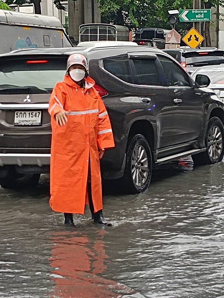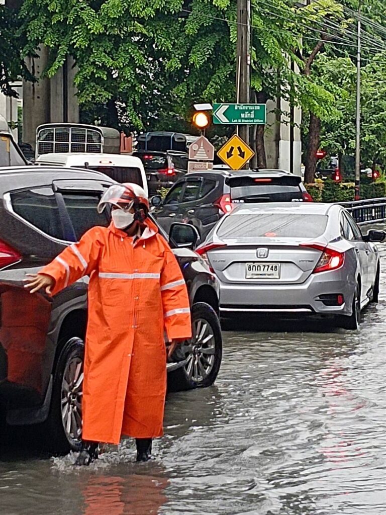 ต้องขอเรียนว่า ช่วงฝนตกหนักตำรวจอาจไม่ได้ยืนตามสี่แยกไฟแดงเหมือนช่วงเวลาปกติก แต่จะเน้นไปที่การช่วยเหลือรถเสีย เป็นหลัก ตำรวจมีหน้าที่ต้องเร่งแก้ไขปัญหานำรถออกจากพื้นผิวการจราจรให้เร็วที่สุด เพื่อไม่ให้การจราจรติดขัดมากขึ้นไปอีก นอกจากนี้ยังต้องคอยดูสิ่งกีดขวางต่างๆ ที่อาจโดนกระแสน้ำ หรือลมพัดมาตกในพื้นผิวถนน เช่น ป้ายต่างๆ แผงเหล็ก หรือกรวยยางจราจร เพราะหากมีปัญหาเพียงจุดเดียว จะเกิดผลกระทบกับการจราจรในภาพรวมทั้งหมด
