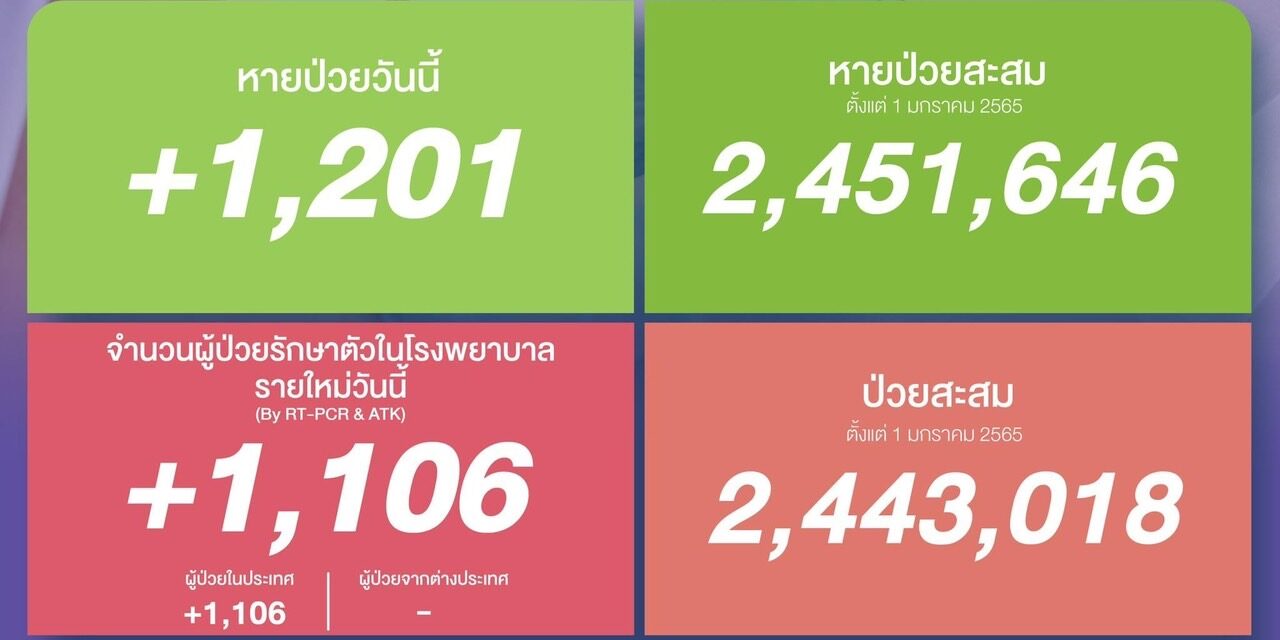 หายป่วยสะสม 2,451,646 ราย (ตั้งแต่ 1 มกราคม 2565)