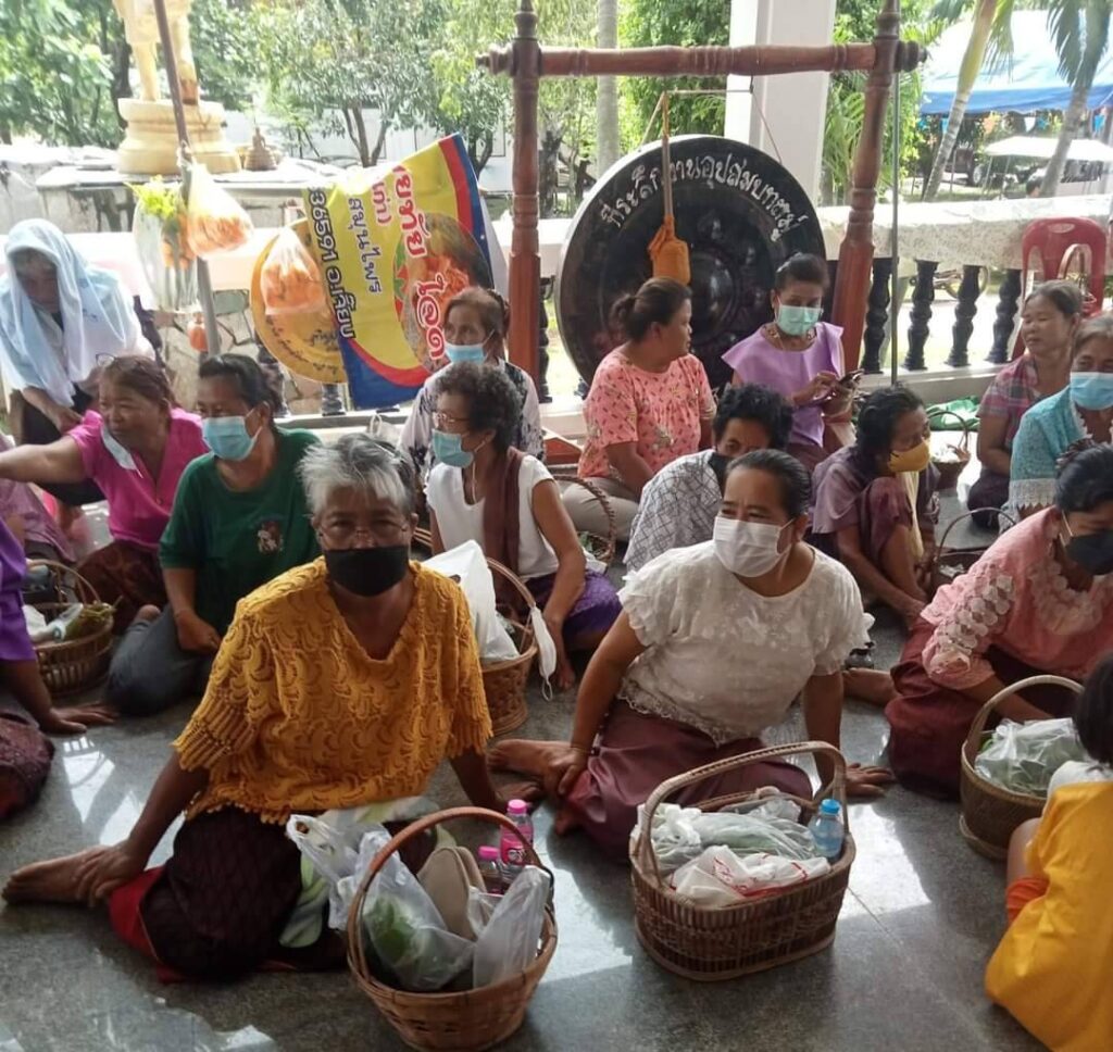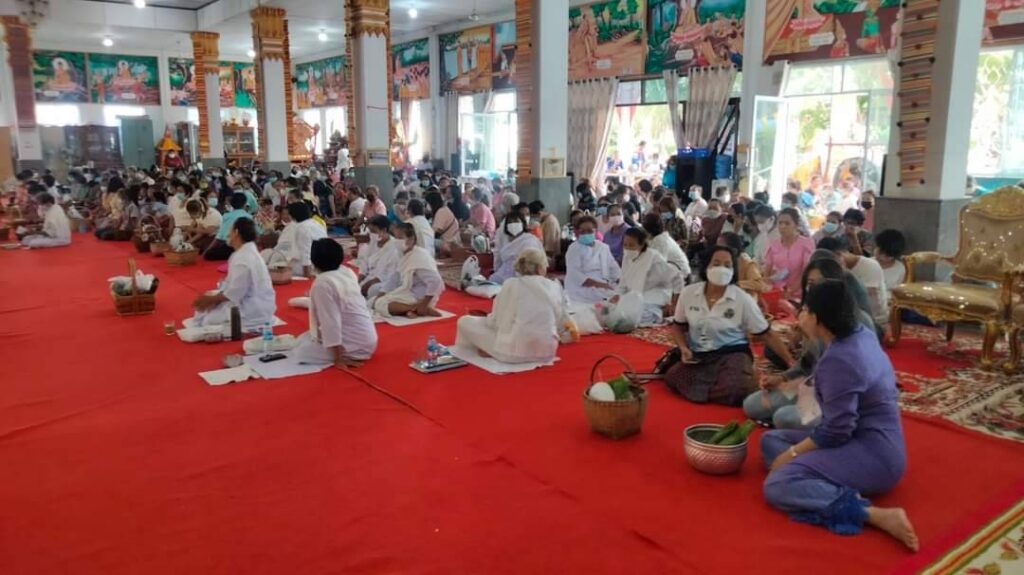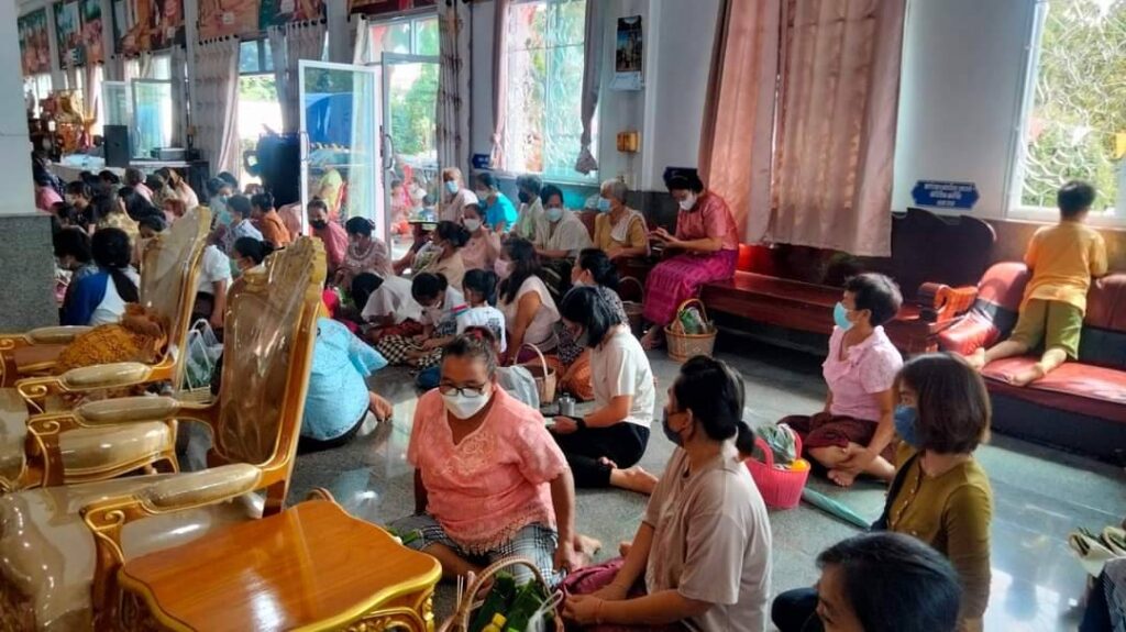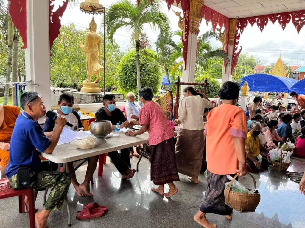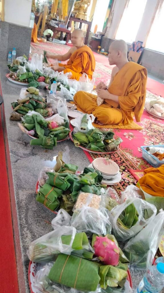 เมื่อถึงวันขึ้น 15 ค่ำ เดือนสิบ ตอนเช้า ชาวบ้าน จะพากันนำอาหารคาวหวานต่าง ๆ ไปทำบุญตักบาตร ที่วัด โดยพร้อมเพรียงกัน และถวายทานอุทิศส่วนกุศล ให้ญาติมิตรผู้ล่วงลับไปแล้ว