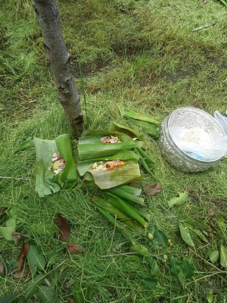 เมื่อเสร็จพิธีถวายข้าวสากแล้ว ช้าวบ้านที่ไปร่วมพิธี ยังนิยมเอาชะลอมหรือห่อข้าวสากไปวางไว้ตามที่ต่าง ๆ ในบริเวณวัด พร้อมจุดเทียนและบอกกล่าวให้ญาติ หรือเปรตผู้ล่วงลับไปแล้วมารับเอาอาหารต่าง ๆ ที่วางไว้ และขอให้มารับส่วนกุศลที่ทำบุญอุทิศไปให้ด้วย (ผู้จัดทำ ก็เคยทำสมัยเป็นเด็กกับมารดา)