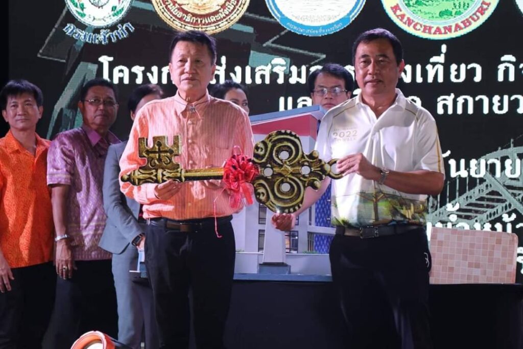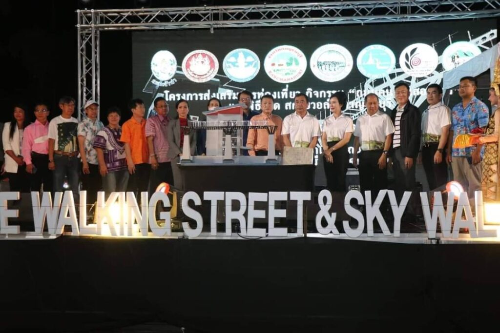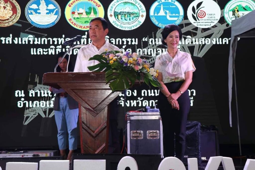 วันนี้ ( 10 กันยายน 2565 ) เวลา 19.09 น. ที่ ถนนสองแควริมน้ำหน้าเมือง อำเภอเมือง จังหวัดกาญจนบุรี นายจีระเกียรติ ภูมิสวัสดิ์ ผู้ว่าราชการจังหวัดกาญจนบุรี เป็นประธานเปิดสกายวอร์คและถนนคนเดินสองแคว พร้อมด้วย นางรชยา ภูมิสวัสดิ์ นายกเหล่ากาชาดจังหวัดกาญจนบุรี นายชำนาญ ชื่นตา นายสมหวัง บุญระยอง รองผู้ว่าราชการจังหวัดกาญจนบุรี โดยมี นายวสันต์ ภูษิตกาญจนา นายกเทศมนตรีเมืองกาญจนบุรี กล่าวรายงานวัตถุประสงค์ฯ และหัวหน้าส่วนราชการ คณะผู้บริหารเทศบาลเมืองกาญจนบุรี ข้าราชการ เจ้าหน้าที่ ประชาชนและนักท่องเที่ยว เข้าร่วมงานเป็นจำนวนมาก
