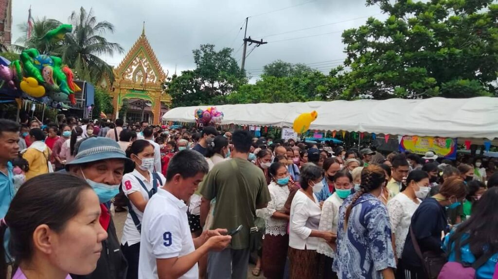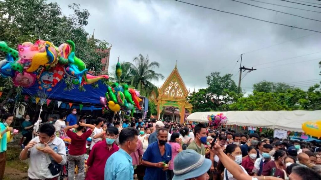 พุทธศาสนิกชน ผู้มีจิตศรัทธา ที่มาร่วมบุญในครั้งนี้รวมถึงจัดตั้งโรงทานอาหารและน้ำดื่มจากผู้มีใจบุญจิตศรัทธา คุณสุขวรรณ สุทธิวงศ์ กรรมการผู้จัดการ บริษัท ซีพีเอส และชิปปิ้ง แอนด์โลจิสติกส์ จำกัด ได้นำข้าวสารถุงละ5กิโลกรัม จำนวน 1000 ถุง เพื่อนำมาแจกจ่ายให้กับผู้ที่เข้ามาร่วมงานบุญนี้อีกด้วยกันอย่างหนาแน่นคึกคักและยังมีรำถวายอีกด้วย เวลาประมาณ09.30น. มีพิธีมอบทุนสาธารณโยชน์ และ พิธีแสดงมุทิตาจิต พระครูปริยัติสารโกศล ชาวบ้านเข้าร่วมอย่างหนาแน่นตาจำนวนมากมายหลังเสร็จพิธีสิ้นแล้ว เวลา 10.00น.พิธีเปิดงานประเพณีทอดเทียนรวมประจำปี2565 พร้อมด้วยมีการประกวดขับร้องสรภัญญะแข่งขันมีชิงรางวัลชนะเลิศในครั้งนี้ เวลา 16.00น.ประกาศผลการขับร้องสรภัญณะรับมอบรางวัลและพิธีปิดงานประเพณีทอดเทียนรวม พุทธศาสนิกชน ผู้มีจิตศรัทธาที่ร่วมพร้อมทั้งปะพรมน้ำพระพุทธมนต์และวัตถุมงคลให้กับผู้มาร่วมงานทุกคนก่อนเดินทางกลับเพื่อความเป็นสิริมงคลด้วย