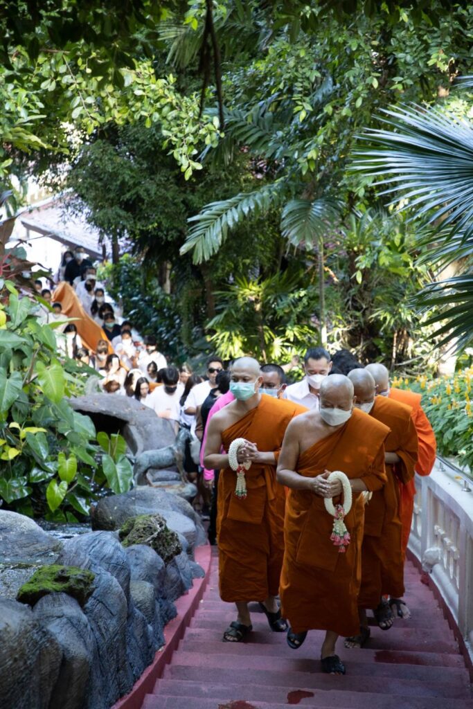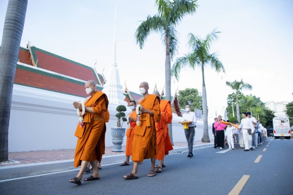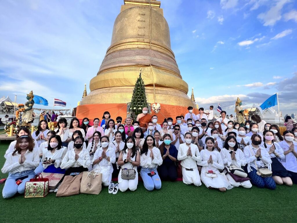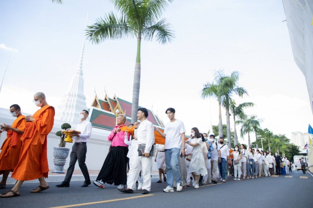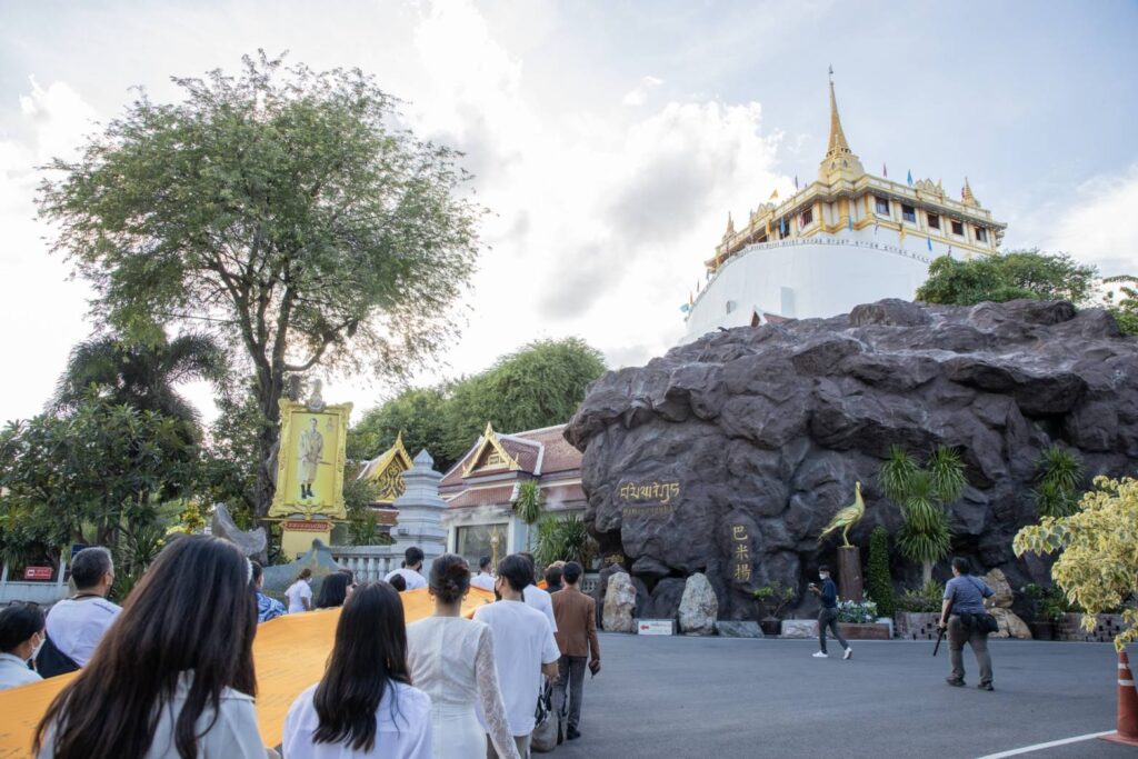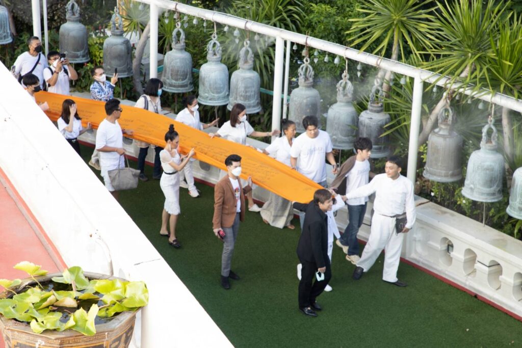 หลังเสร็จงานแถลงข่าว ดร.นุ้ย พิธีกร นำทีมพาผู้เข้าร่วมงานทั้งหมดถ่ายรูปหมู่ และตั้งขบวนด้านหน้าพระอุโบสถ พร้อมพระสงฆ์ 5 รูป นำเดินไปยังภูเขาทอง และขึ้นไปบนเจดีย์ภูเขาทอง เวียนเทียน ๓ รอบ และให้ทุกคนอธิษฐานจิต เพื่อขอพร และขอความเป็นสิริมงคลในชีวิต จากนั้น พระปัญญาวชิราภรณ์ ผู้ช่วยเจ้าอาวาสวัดสระเกศฯ ได้มอบ หนังสือ “ทศชาติ” ปณิธานมหาบุรุษไม่เปลี่ยนแปลง ที่ใช้เวลากว่า ๘ เดือน ในการเขียน เพื่อเฉลิมพระเกียรติ สมเด็จพระนางเจ้าสิริกิติ์ พระบรมราชินีนาถ พระบรมราชชนนีพันปีหลวง เนื่องในโอกาสมหามงคลเฉลิมพระชนมพรรษา ๙๐ พรรษา ๑๒ สิงหาคม ๒๕๖๕ ให้กับ ดร.ทวีศักดิ์ เผ่าบัณฑูร รองประธาน สว.นท เป็นที่ระลึกอีกด้วย