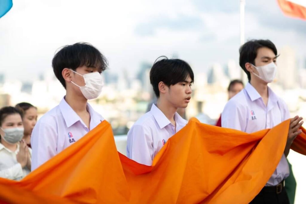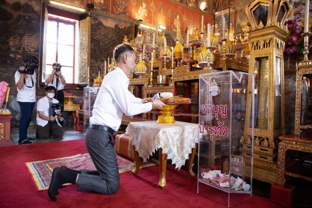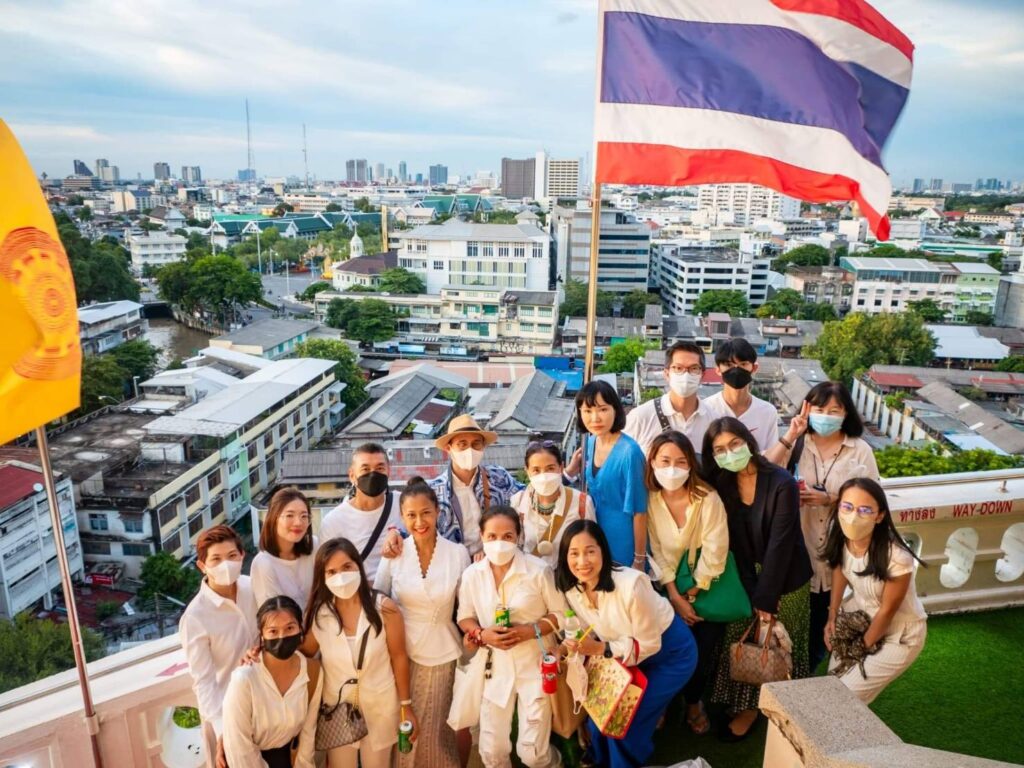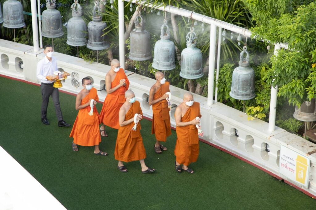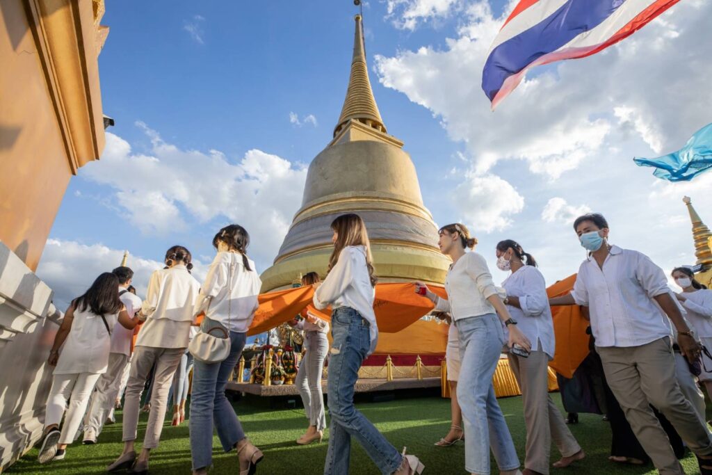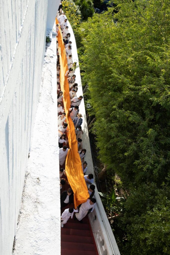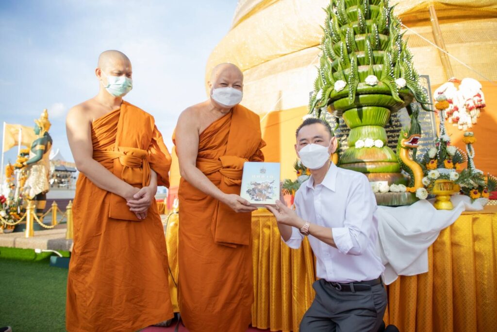 หลังเสร็จงานแถลงข่าว ดร.นุ้ย พิธีกร นำทีมพาผู้เข้าร่วมงานทั้งหมดถ่ายรูปหมู่ และตั้งขบวนด้านหน้าพระอุโบสถ พร้อมพระสงฆ์ 5 รูป นำเดินไปยังภูเขาทอง และขึ้นไปบนเจดีย์ภูเขาทอง เวียนเทียน ๓ รอบ และให้ทุกคนอธิษฐานจิต เพื่อขอพร และขอความเป็นสิริมงคลในชีวิต จากนั้น พระปัญญาวชิราภรณ์ ผู้ช่วยเจ้าอาวาสวัดสระเกศฯ ได้มอบ หนังสือ “ทศชาติ” ปณิธานมหาบุรุษไม่เปลี่ยนแปลง ที่ใช้เวลากว่า ๘ เดือน ในการเขียน เพื่อเฉลิมพระเกียรติ สมเด็จพระนางเจ้าสิริกิติ์ พระบรมราชินีนาถ พระบรมราชชนนีพันปีหลวง เนื่องในโอกาสมหามงคลเฉลิมพระชนมพรรษา ๙๐ พรรษา ๑๒ สิงหาคม ๒๕๖๕ ให้กับ ดร.ทวีศักดิ์ เผ่าบัณฑูร รองประธาน สว.นท เป็นที่ระลึกอีกด้วย