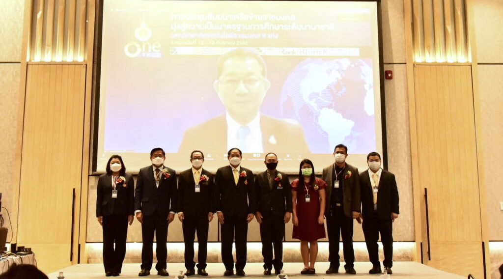 เมื่อเวลา 09.00 น. วันที่ 12 กันยายน 2565 ที่โรงแรม โนโวเทล กรุงเทพ ฟิวเจอร์พาร์ค รังสิต จ.ปทุมธานี ศาสตราจารย์ ดร.นพ.สิริฤกษ์ ทรงศิวิไล ปลัดกระทรวงการอุดมศึกษาวิทยาศาสตร์ วิจัยและนวัตกรรม เป็นประธานในพิธีเปิดผ่านระบบออนไลน์ การประชุมสัมมนาเครือข่ายราชมงคลฯ มุ่งสู่ความเป็นมาตรฐานการศึกษาระดับนานาชาติ โดยมี รองศาสตราจารย์ ดร.สมหมาย ผิวสอาด อธิการบดีมหาวิทยาลัยเทคโนโลยีราชมงคลธัญบุรี (มทร.ธัญบุรี) ในฐานะประธานคณะกรรมการอธิการบดีมหาวิทยาลัยเทคโนโลยีราชมงคล (ทปอ. มทร.) กล่าวรายงานโครงการประชุมสัมมนาเครือข่าย มทร.