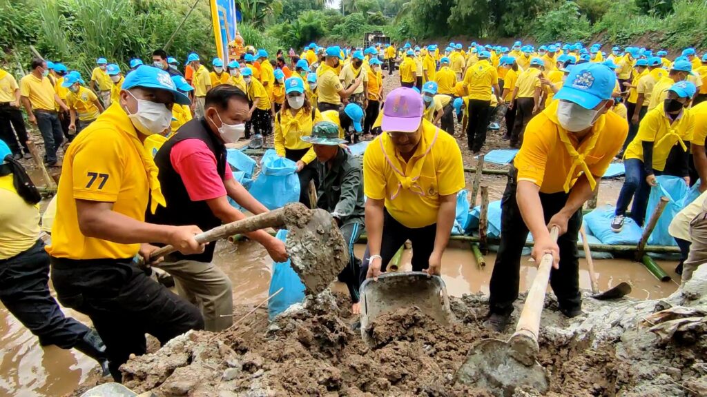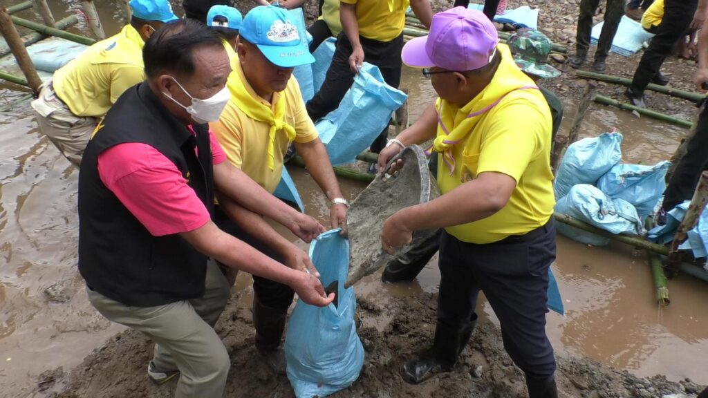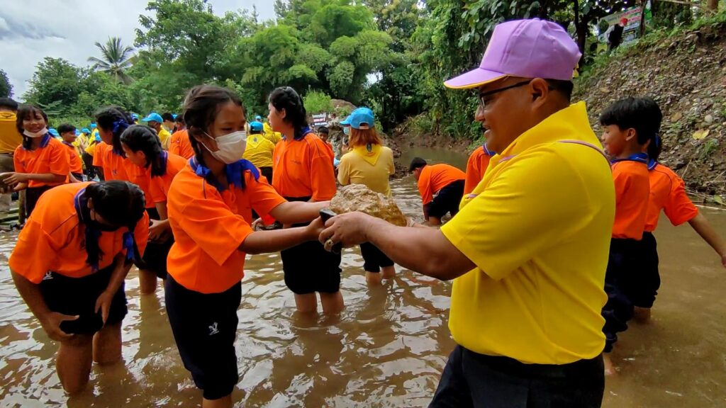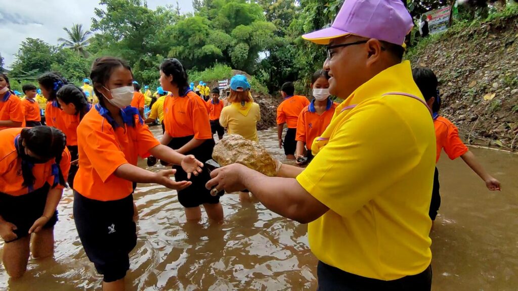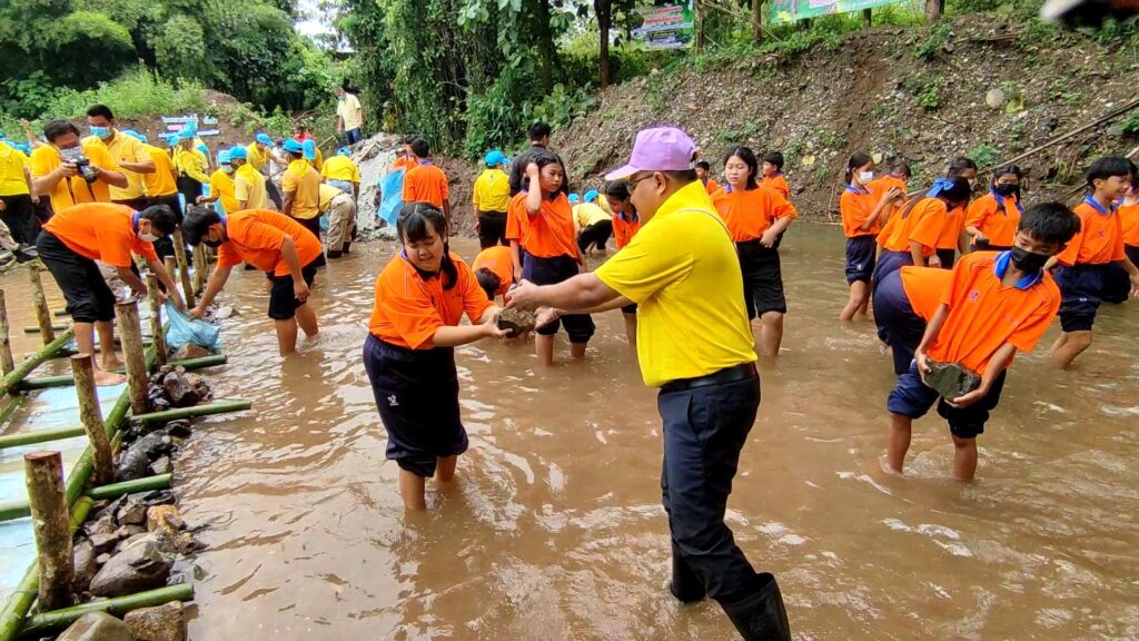 ทั้งนี้ ภายในกิจกรรม นายชัชวาลย์ เบญจสิริวงศ์ รองผู้ว่าราชการจังหวัดเพชรบูรณ์ พร้อมด้วยผู้เข้าร่วมกิจกรรม ก็ต่างช่วยกัน กรอกดิน กรอกทรายใส่ถุงปุ๋ย เพื่อนำไปวางเสริมฝายชะลอน้ำ นอกจากนั้น ทุกคนยังได้ช่วยกันหาก้อนหินที่ไหลมาสะสมอยู่ในลำคลอง เพื่อมาวางเสริมคันฝายชะลอน้ำให้มั่นคงแข็งแรงมากยิ่งขึ้น โดยทางท่านรองผู้ว่าราชการจังหวัดเพชรบูรณ์ ก็ได้ร่วมแรงร่วมใจกับทุกคน หาก้อนหิน ที่พอหาได้ตามธรรมชาติ ทั้งริมตลิ่ง และงมหาในน้ำ ซึ่งก็มีทั้งก้อนเล็ก ก้อนใหญ่ปะปนกันอยู่ ซึ่งทางรองผู้ว่าฯ ก็ได้โชว์ฟิต ด้วยการอุ้มก้อนหินขนาดใหญ่ เพื่อนำมาวางใส่ฝายชะลอน้ำ โดยกล่าวติดตลกว่า หินก้อนขนาดนี้ สำหรับตนนั้น ยังคงไม่หนัก เพราะหนักกว่านี้ก็อุ้มมาแล้ว แต่ไม่ยอมบอกว่าสิ่งที่อุ้มคืออะไร เพราะเป็นความลับ ซึ่งหลังกล่าวเสร็จ ก็เรียกเสียงเฮ และเรียกเสียงหัวเราะ สร้างอย่างสนุกสนาน ครื้นเครงแก่ผู้เข้าร่วมกิจกรรมในครั้งนี้ และต่างช่วยกันอย่างขยันขันแข็ง จนสร้างฝายชะลอน้ำแล้วเสร็จ