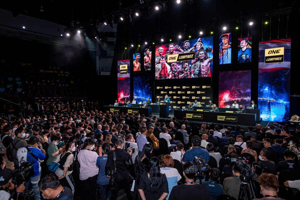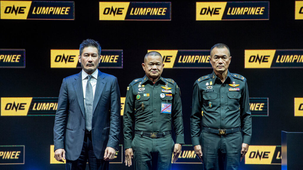 วันที่ 12 กันยายน 2565 : นายชาตรี ศิษย์ยอดธง ผู้ก่อตั้ง ประธาน และซีอีโอ ONE พร้อมด้วย พลเอกสุชาติ แดงประไพ ผู้อำนวยการศูนย์พัฒนากีฬากองทัพบก (มวยไทยลุมพินี) ร่วมแถลงข่าวประกาศความร่วมมือ เตรียมจัดการแข่งขันมวยไทยโปรดักชันระดับโลกในชื่อศึก “ONE LUMPINEE” ณ สนามมวยเวทีลุมพินี รามอินทรา กรุงเทพ โดยมีเหล่าโปรโมเตอร์ หัวหน้าคณะ ค่ายมวย นักมวยไทย บุคลากรในวงการกีฬาทั้งภาครัฐและเอกชน สื่อมวลชน ตลอดจนแฟนคลับ เดินทางมาร่วมงานกว่า 1,000 คน