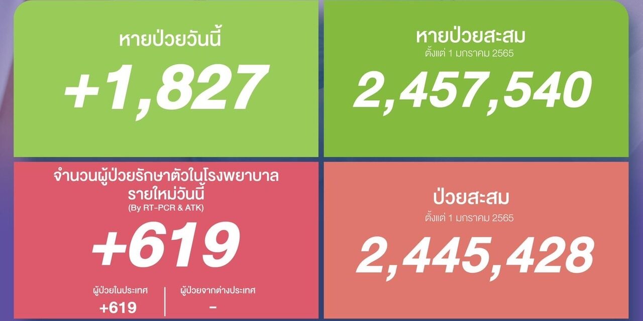 หายป่วยสะสม 2,457,540 ราย (ตั้งแต่ 1 มกราคม 2565)