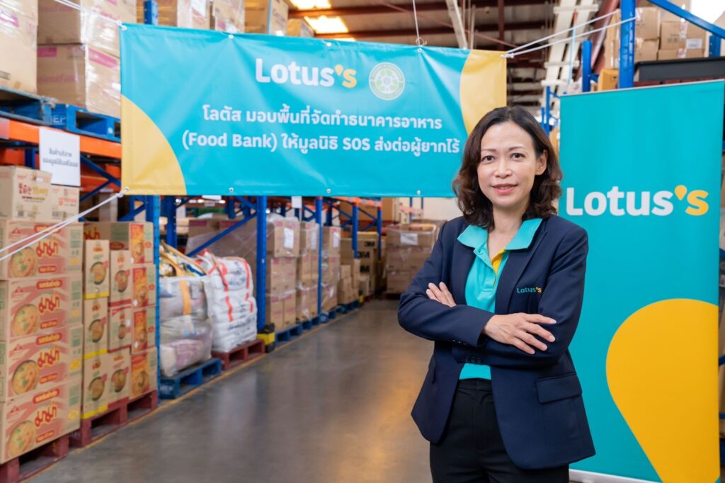 นางสาวสลิลลา สีหพันธุ์ ประธานเจ้าหน้าที่บริหารด้านความยั่งยืน ธุรกิจโลตัส ประเทศไทย กล่าวว่า “โลตัส ได้ริเริ่มโครงการกินได้ไม่ทิ้งกันตั้งแต่ปี 2560 โดยบริจาคอาหารที่จำหน่ายไม่หมดแต่ยังคงรับประทานได้ให้แก่ผู้ยากไร้ แทนการทิ้งให้กลายเป็นขยะอาหารซึ่งจะส่งผลกระทบต่อสิ่งแวดล้อม โดยร่วมมือกับหน่วยงานทั้งภาครัฐและเอกชน รวมถึงมูลนิธิ SOS ด้วย ปัจจุบันโลตัสบริจาคอาหารให้ผู้ยากไร้ในโครงการดังกล่าวรวมแล้วกว่า 2,800,000 มื้อ ล่าสุด โลตัสได้ร่วมมือกับมูลนิธิ SOS ในการขับเคลื่อนธนาคารอาหารแห่งชาติ โดยมอบพื้นที่เก็บสินค้าของโลตัส สาขาบ้านฟ้า ลำลูกกา ให้มูลนิธิ SOS ใช้ประโยชน์ในการจัดเก็บอาหารที่ได้รับการบริจาคจากองค์กรต่างๆ ทั้งอาหารสดและอาหารแห้ง เพื่อรอการกระจายต่อให้ชุมชนเปราะบางและผู้ด้อยโอกาส โลตัส ในฐานะห้างค้าปลีกที่จำหน่ายอาหารสดคุณภาพสูงที่สะอาด ปลอดภัย มีพื้นที่เก็บสินค้าและระบบการจัดการสินค้าอาหารที่ได้มาตรฐานและมีความปลอดภัยสำหรับการบริโภค การมอบพื้นที่ให้มูลนิธิ SOS จึงจะช่วยเสริมประสิทธิภาพด้านการบริหารจัดการธนาคารอาหารของมูลนิธิให้ดียิ่งขึ้น ขยายขีดความสามารถให้มีศูนย์จัดเก็บอาหารบริจาคในปริมาณมากขึ้น พร้อมตู้ควบคุมอุณหภูมิที่สามารถจัดเก็บอาหารสดและอาหารแห้งได้ยาวนานขึ้น ถูกสุขอนามัยและคงคุณค่าทางโภชนาที่ดีไว้ได้ เพื่อเป็นศูนย์เก็บและกระจายอาหารบริจาคให้ผู้ด้อยโอกาสในพื้นที่ลำลูกกาและบริเวณใกล้เคียง ซึ่งนอกจากจะเป็นการช่วยเหลือชุมชนผู้ด้อยโอกาสแล้ว ยังช่วยผลักดันเป้าหมายของเครือเจริญโภคภัณฑ์ที่จะลดขยะอาหารให้เป็นศูนย์ภายในปีค.ศ. 2030 (Zero food waste to landfill by 2030) อีกด้วย”