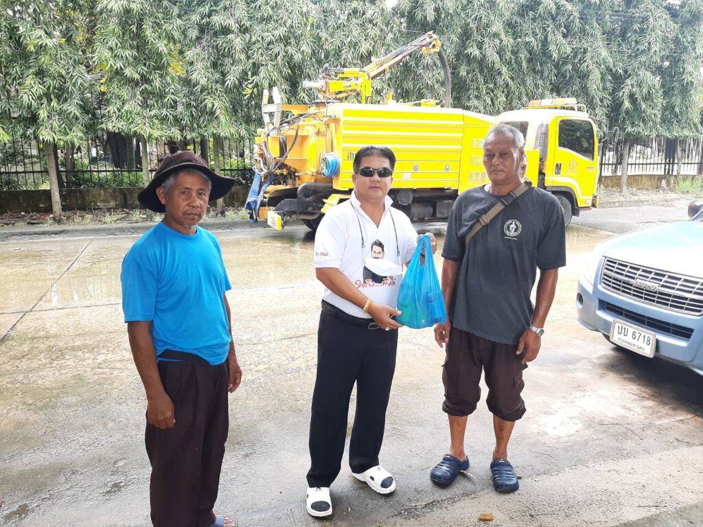 เบื้องต้นในวันนี้ ส.ก.นวรัตน์ อยู่บํารุง ได้ลงพื้นที่ติดตามผลการดำเนินการ พร้อมทั้ง ได้มอบเงิน 3000 บาท เพื่อเป็นขวัญกำลังใจแก่ จนท. ที่กำลังปฎิบัติงาน เพื่อสนับสนุนเป็นค่าอาหารน้ำดื่ม ในการลอกท่อระบายน้ำในวันนี้