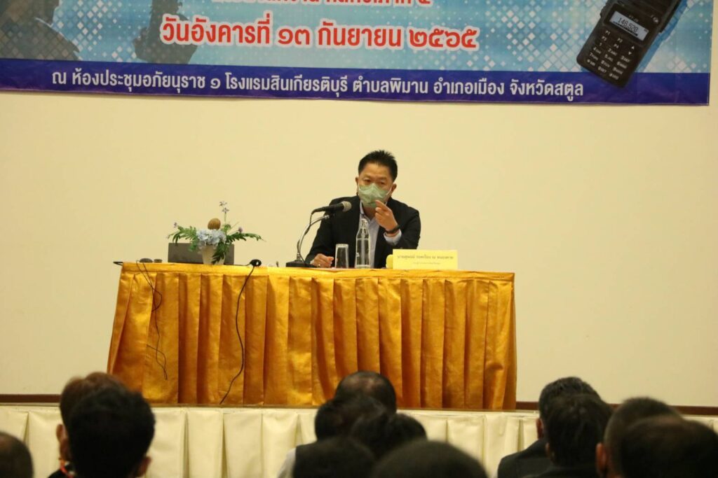 วันนี้ 13 ก.ย. 2565 ที่ห้องประชุมอภัยนุราช 1 ชั้น 2 โรงแรมสินเกียรติบุรี อำเภอเมืองสตูล จังหวัดสตูล นายสุพจน์ รอดเรือง รองผู้ว่าราชการจังหวัดสตูล เป็นประธานในพิธีเปิดการอบรมเชิงปฏิบัติการฝึกซ้อมการใช้เครื่องวิทยุคมนาคม โดยใช้คลื่นความถี่ในการติดต่อประสานงานระหว่างหน่วยงานของรัฐ เอกชนและประชาชน กรณีภัยพิบัติหรือเหตุฉุกเฉิน จัดโดยสำนักงาน กสทช. ภาค 4