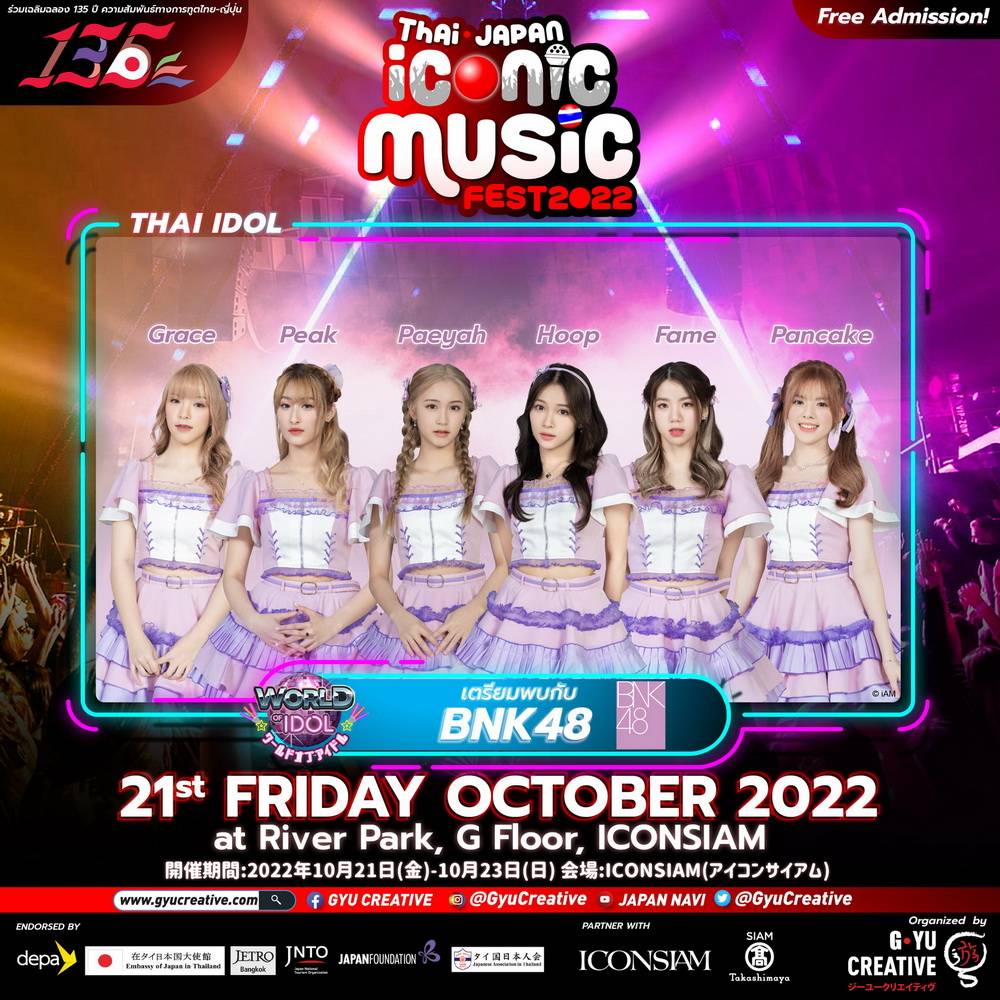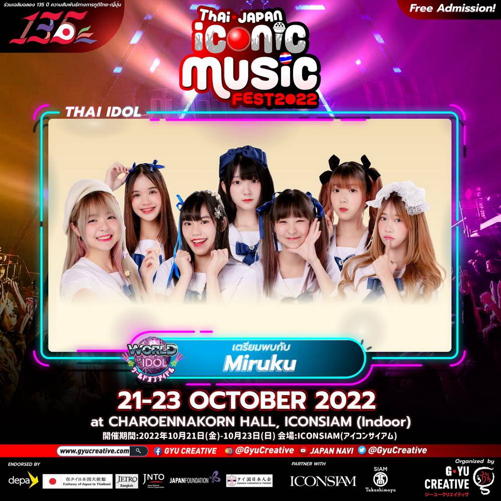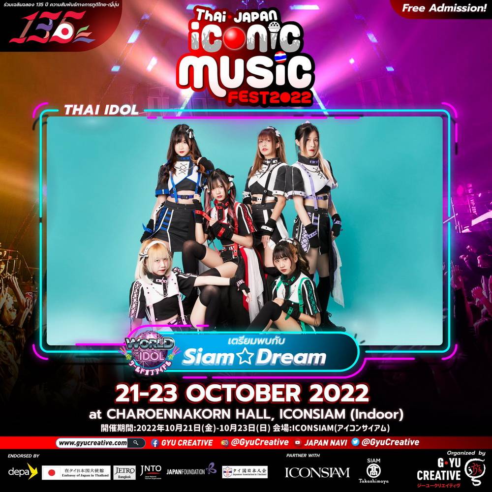 เหล่าสาวกไอดอลไทย เตรียมตัวกันให้ดี!!!! เพราะศิลปินไอดอลกรุ๊ปทั่วฟ้าเมืองไทยกับคอนเสิร์ตยิ่งใหญ่ที่สุดแห่งปี2022 กับการรวมตัวของเหล่าไอดอลสัญชาติไทย ทั้งเกิร์ลกรุ๊ป บอยแบนด์ ศิลปินเดี่ยว และ T-POP กว่า 100 ชีวิต บนเวทีคอนเสิร์ตยักษ์ริมแม่น้ำเจ้าพระยา ในคอนเสิร์ตที่มีชื่อว่า Thai-Japan Iconic Music Fest 2022 คอนเสิร์ตที่จะเชื่อมความสัมพันธ์ระหว่างประเทศไทย และประเทศญี่ปุ่น กับการเฉลิมฉลอง 135 ปีความสัมพันธ์ทางการทูตไทย-ญี่ปุ่น จัดงานและสร้างสรรค์โดย บริษัท จี-ยู ครีเอทีฟ จำกัด บริษัทอีเว้นท์ญี่ปุ่นที่ยิ่งใหญ่ในแถบเอเชีย จับมือกับ ไอคอนสยาม แลนด์มาร์กระดับโลกริมแม่น้ำเจ้าพระยา จัดกิจกรรมความสนุกแบบไร้ขีดจำกัด กับคอนเสิร์ตความร่วมมือระหว่างศิลปินไทยและญี่ปุ่นที่ยิ่งใหญ่ที่สุดแห่งปี โดยจะจัดขึ้นระหว่าง วันศุกร์ที่ 21 – วันอาทิตย์ที่ 23 ตุลาคม 2565 ณ RIVER PARK , G Floor (outdoor) / CHAROENNAKORN HALL (Indoor) , ICONSIAM