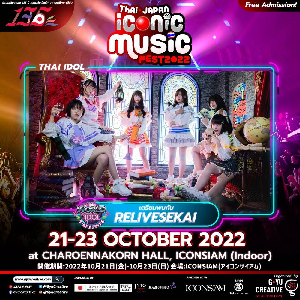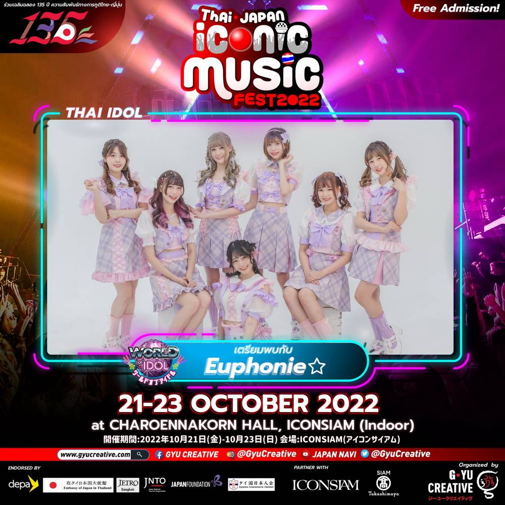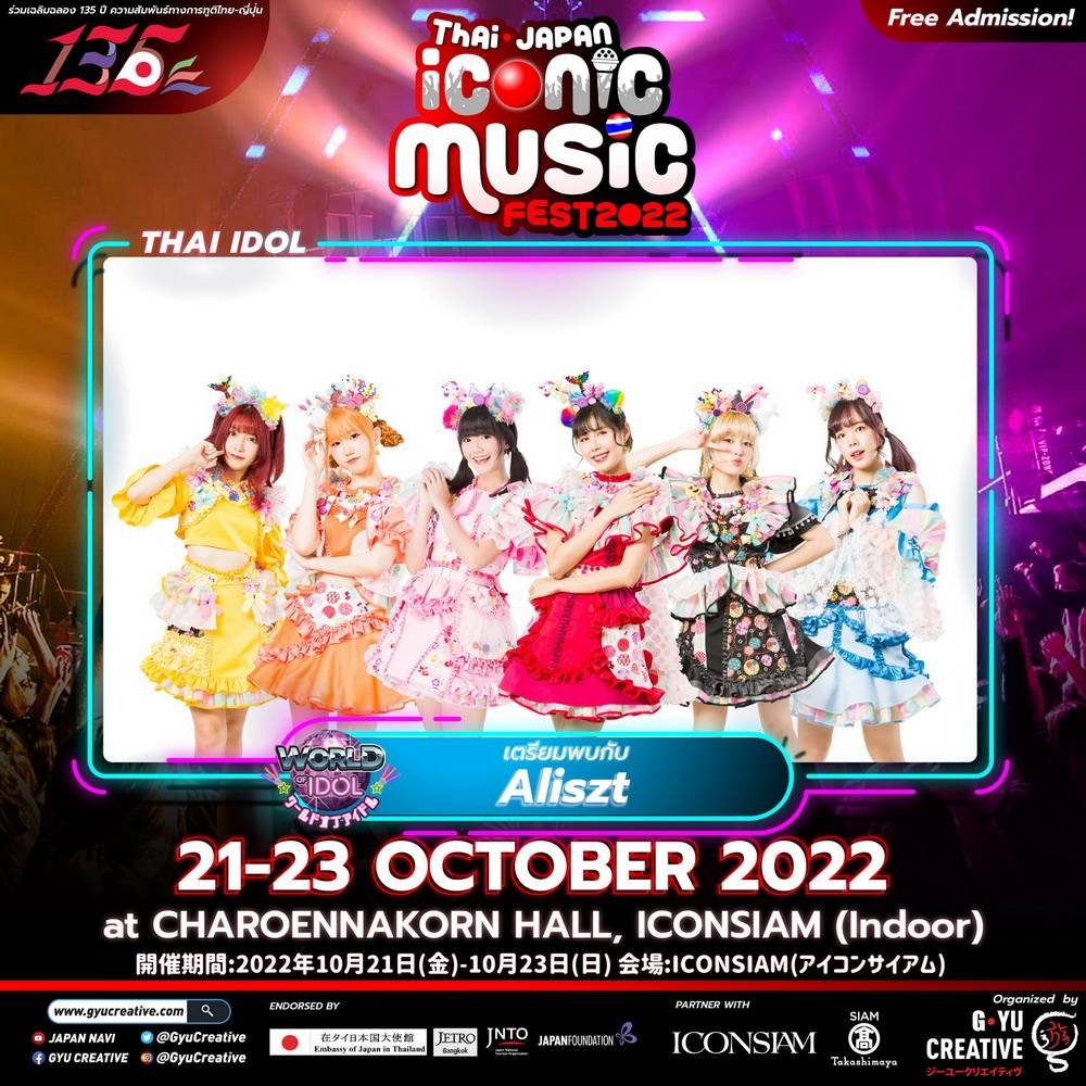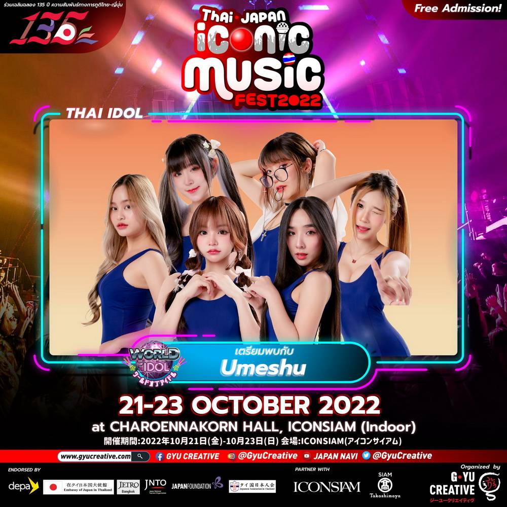 เหล่าสาวกไอดอลไทย เตรียมตัวกันให้ดี!!!! เพราะศิลปินไอดอลกรุ๊ปทั่วฟ้าเมืองไทยกับคอนเสิร์ตยิ่งใหญ่ที่สุดแห่งปี2022 กับการรวมตัวของเหล่าไอดอลสัญชาติไทย ทั้งเกิร์ลกรุ๊ป บอยแบนด์ ศิลปินเดี่ยว และ T-POP กว่า 100 ชีวิต บนเวทีคอนเสิร์ตยักษ์ริมแม่น้ำเจ้าพระยา ในคอนเสิร์ตที่มีชื่อว่า Thai-Japan Iconic Music Fest 2022 คอนเสิร์ตที่จะเชื่อมความสัมพันธ์ระหว่างประเทศไทย และประเทศญี่ปุ่น กับการเฉลิมฉลอง 135 ปีความสัมพันธ์ทางการทูตไทย-ญี่ปุ่น จัดงานและสร้างสรรค์โดย บริษัท จี-ยู ครีเอทีฟ จำกัด บริษัทอีเว้นท์ญี่ปุ่นที่ยิ่งใหญ่ในแถบเอเชีย จับมือกับ ไอคอนสยาม แลนด์มาร์กระดับโลกริมแม่น้ำเจ้าพระยา จัดกิจกรรมความสนุกแบบไร้ขีดจำกัด กับคอนเสิร์ตความร่วมมือระหว่างศิลปินไทยและญี่ปุ่นที่ยิ่งใหญ่ที่สุดแห่งปี โดยจะจัดขึ้นระหว่าง วันศุกร์ที่ 21 – วันอาทิตย์ที่ 23 ตุลาคม 2565 ณ RIVER PARK , G Floor (outdoor) / CHAROENNAKORN HALL (Indoor) , ICONSIAM