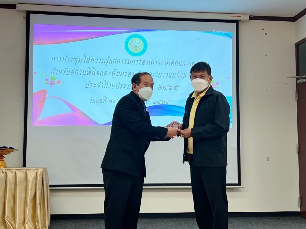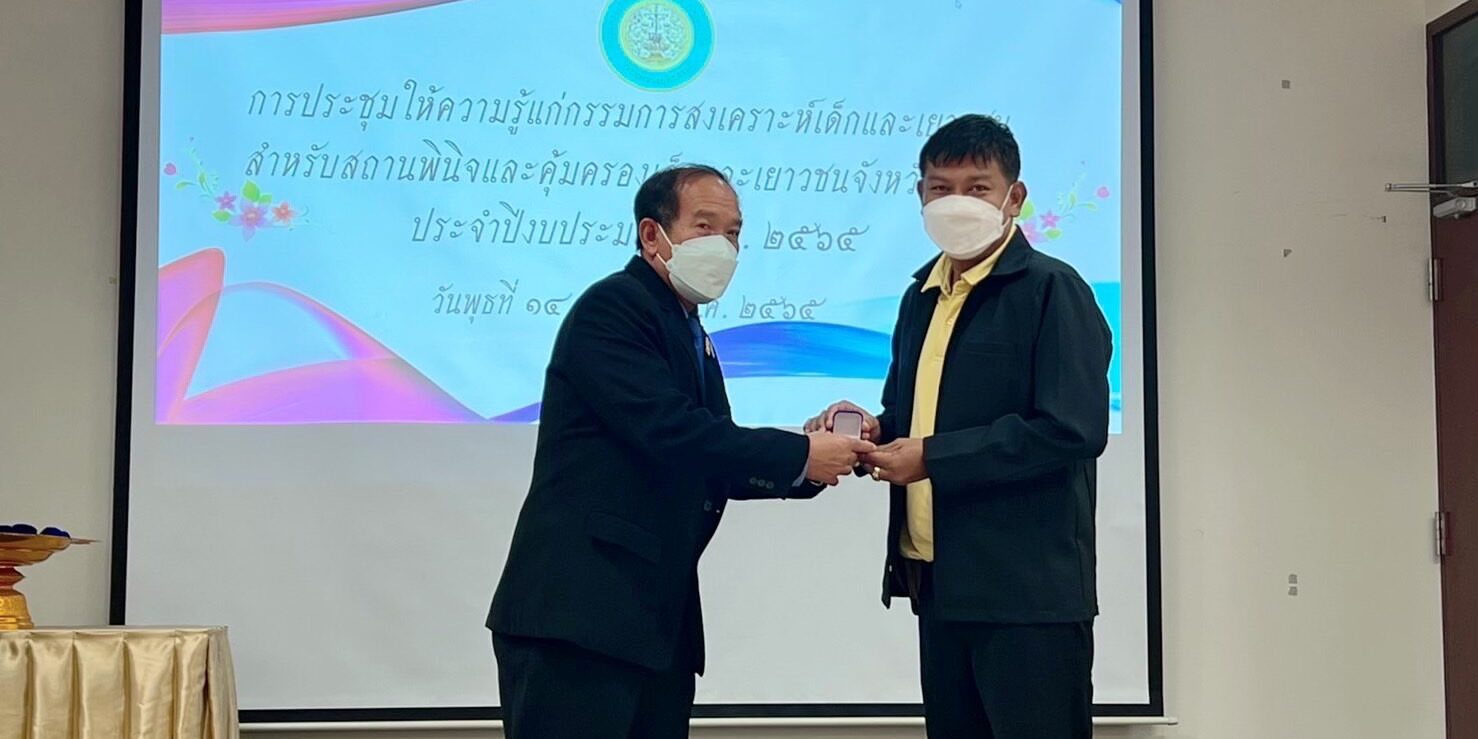 เป็นประธานเปิดประชุมเชิงปฏิบัติการให้ความรู้แนวทางปฏิบัติงานกรรมการสงเคราะห์ฯ สำหรับสถานพินิจ และรับมอบเข็มเครื่องหมายกรรมการสงเคราะห์