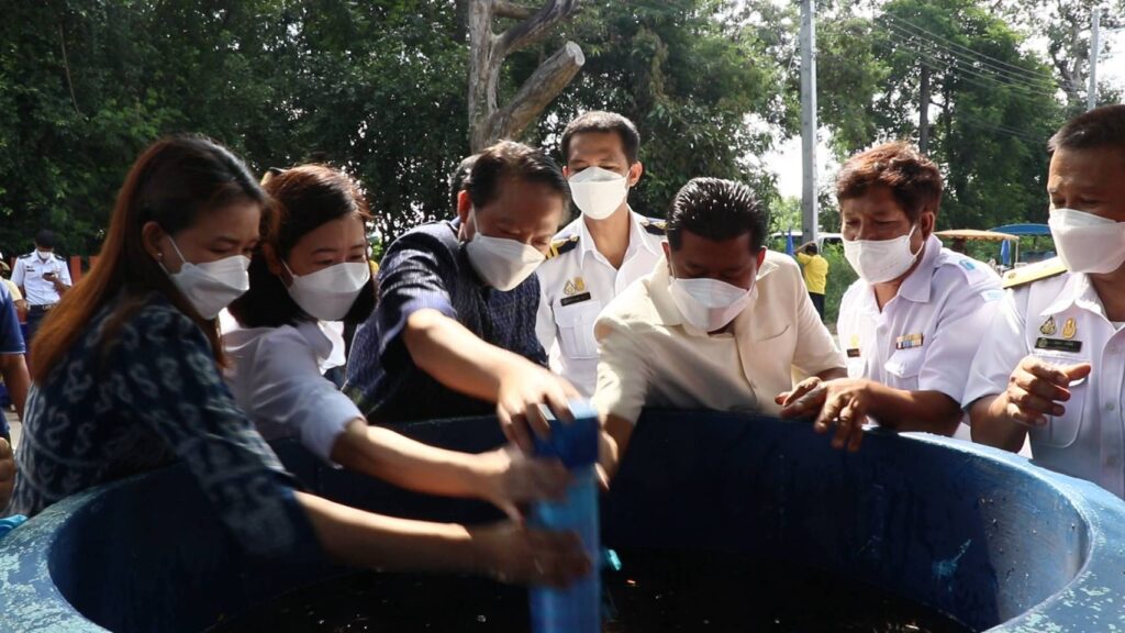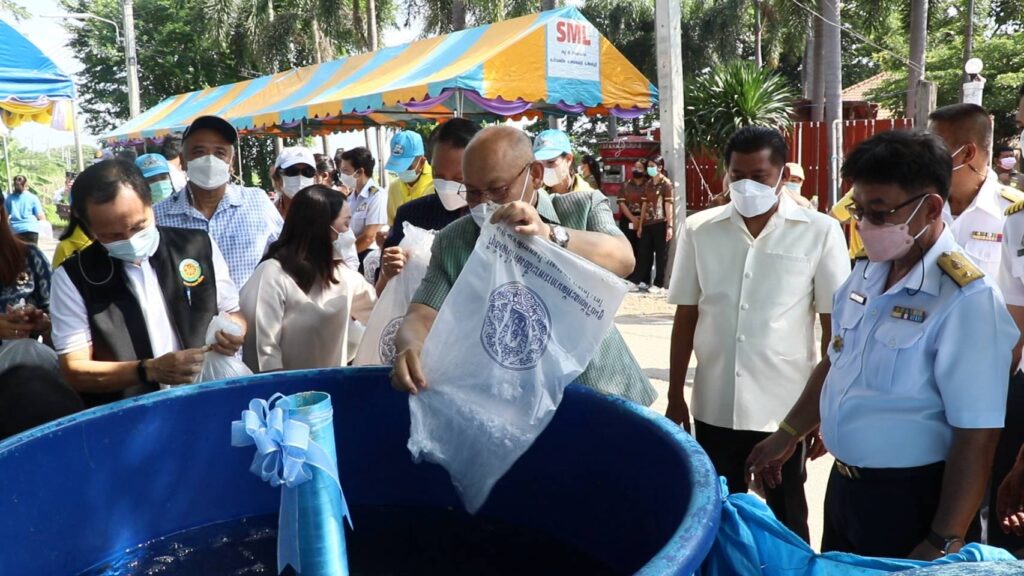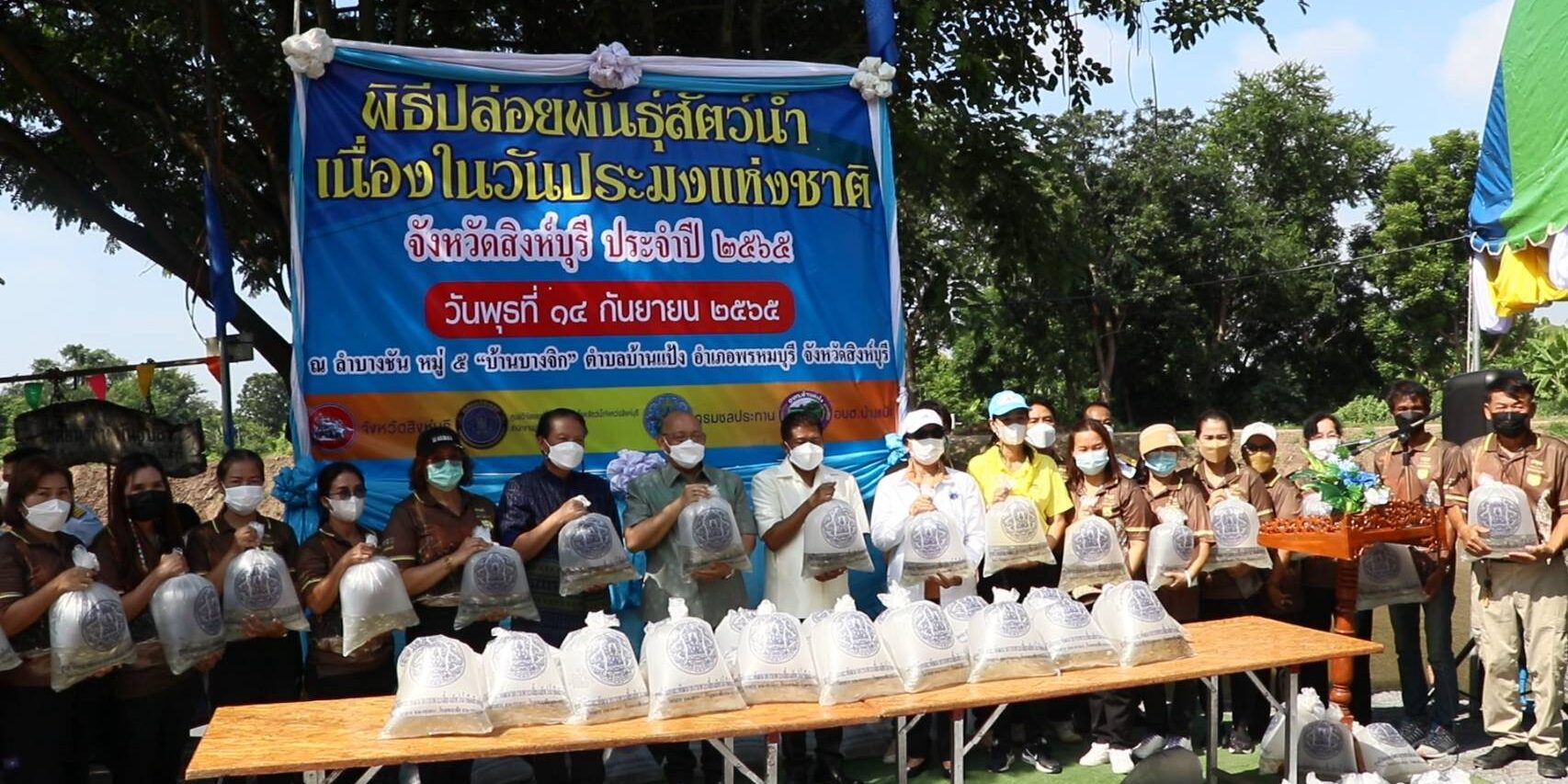 วันที่ 14 กันยายน 2565 นายชัยชาญ สิทธิวิรัชธรรม ผู้ว่าราชการจังหวัดสิงห์บุรี เป็นประธานเปิดกิจกรรมปล่อยพันธุ์สัตว์น้ำ เนื่องในวันประมงแห่งชาติ ประจำปี 2565 ณ ลำบางชัน บ้านบางจิก หมู่ที่ 5 ตำบลบ้านแป้ง อำเภอพรหมบุรี จังหวัดสิงห์บุรี โดยมี นายสัมฤทธิ์ กองเงิน พร้อมนายสมชาย ลีหล้าน้อย รองผู้ว่าราชการจังหวัดสิงห์บุรี นายอำเภอพรหมบุรี นายอำพร ศักดิ์เศรษฐ ประมงจังหวัดสิงห์บุรี หัวหน้าส่วนราชการ ครู นักเรียน และประชาชนจิตอาสา ร่วมกันปล่อยพันธุ์ปลาตะเพียน 200,00 ตัว ณ ลำบางชัน และแหล่งน้ำโพธิ์ชัย อำเภออินทร์บุรี จำนวน 100,000 ตัว เพื่อให้ประชาชนได้ระลึกถึงความสำคัญของการประมงและยังเป็นกำลังใจให้แก่ชาวประมงในการประกอบอาชีพอันเป็นการเสริมสร้างความสามัคคี ความเป็นน้ำหนึ่งใจเดียวกันให้เกิดกับชาวประมง และประชาชนทั่วไป
