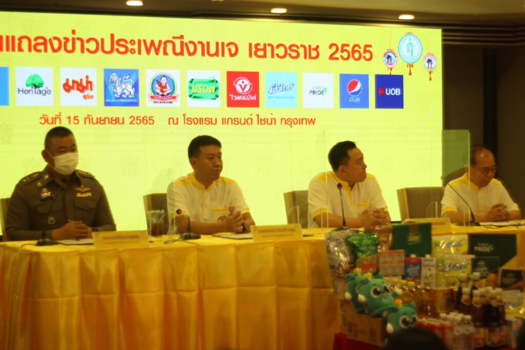 ที่ ห้องบอลรูม ชั้น 10 โรงแรม แกรนด์ไชน่าเยาวราช เวลา 10.00 น. วันนี้( 15 ก.ย.65) : นายศานนท์ หวังสร้างบุญ รองผู้ว่าราชการกรุงเทพมหานคร พร้อมด้วยนายพินิจ กาญจนชูศักดิ์ สมาชิกสภากรุงเทพมหานคร เขตสัมพันธวงศ์ นายธีรเดช สินธพเรืองชัย ประธานจัดงานประเพณีงานเจ เยาวราช และผู้บังคับการตำรวจนครบาล 6 ร่วมกันแถลงข่าวงาน “ประเพณีงานเจ เยาวราช 2565”