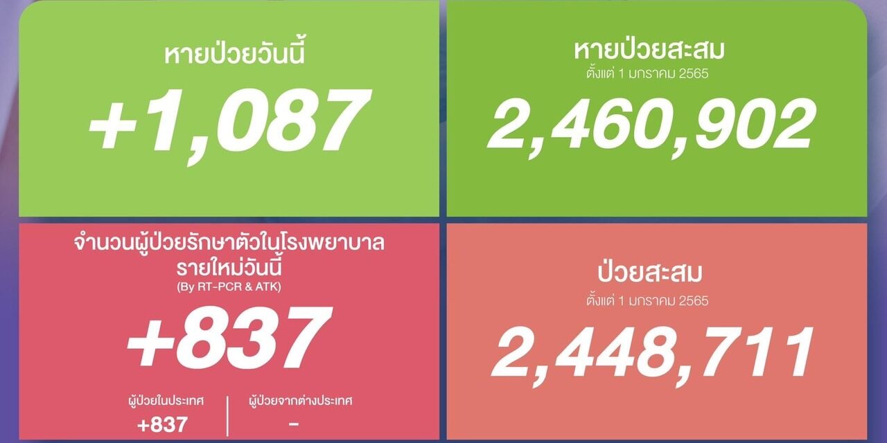 หายป่วยสะสม 2,460,902 ราย (ตั้งแต่ 1 มกราคม 2565)