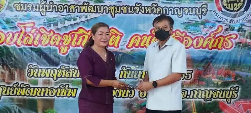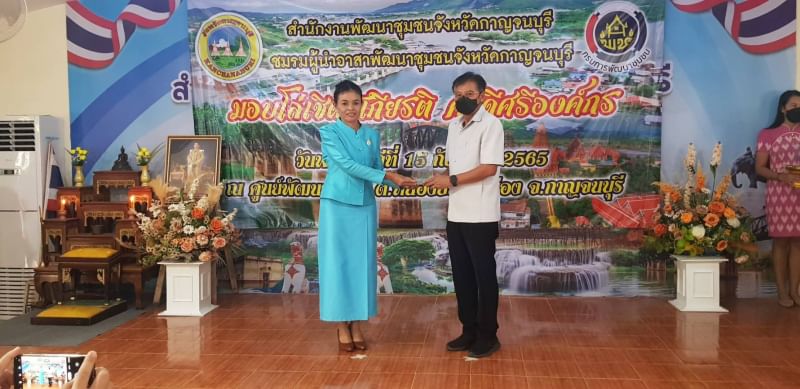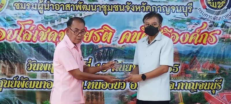 วันที่ ๑๕ กย.๒๕๖๕ เวลา ๑๐.๐๐ น.ณ.ศูนย์พัฒนาอาชีพ ต.หนองบัว อ.เมือง จ.กาญจนบุรี นายกองเอก พงศธร ศิริสาคร รองผู้ว่าราชการจังหวัดกาญจนบุรี ประธานเปิดฯ เปิดเวที แลกเปลี่ยนเรียนรู้ประสบการณ์ การปฏิบัติหน้าที่ของผู้นำอาสาพัฒนาชุมชนจังหวัดกาญจนบุรี โดยมีนายสมพร พุ่มช่วย ผอ.สนง.พัฒนาชุมชน จังหวัดกาญจนบุรี นาย วรเศรษฐ แตงโต ปธ.คกก.ชมรมอาสาพัฒนาชุมชน จังหวัดกาญจนบุรี นายประดิษฐ์ ลำใย ผู้นำ.อาสาพัฒนาชุมชน (ผู้นำ อช.)ชายดีเด่น ระดับจังหวัดประจำปี ๒๕๖๕ นางพิชญธิดา พลรักษา ผู้นำอาสาพัฒนาชุมชน (ผู้นำ อช.) ดีเด่น อำเภอห้วยกระเจา และ นาย บุญยัง เมี่ยงชม คณะกรรมการชมรม.อส.พช.จังหวัดกาญจนบุรี เป็นพิธีกรและผู้ดำเนินรายการ.1.บทบาท และการกิจของผู้นำอาสาพัฒนาชุมชน (ผู้นำ อช)