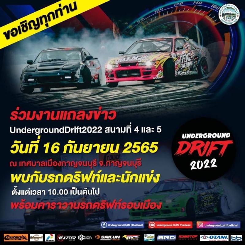 ได้เดินทางเข้าพบนายหงษ์ดี ศรีเสน ผู้อำนวยการโรงเรียนวิสุทธรังษีจังหวัดกาญจนบุรี เพื่อขอใช่พื้นที่ในการจัดกิจกรรมและมอบของขวัญให้กับนักเรียนในโรงเรียนวิสุทธรังษีฯที่มาร่วมชมและร่วมเล่นกิจกรรมก่อนจะเปิดแถลงข่าวการจัดการแข่งขัน “UndergroundDrift 2022″ในเวลา 17.00 น. ของวันที่ 16 กันยายน 2565 ณ บริถนนหลักเมืองกาญจนบุรี ตำบลบ้านเหนือ อำเภอเมือง จังหวัดกาญจนบุรี