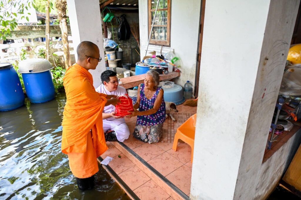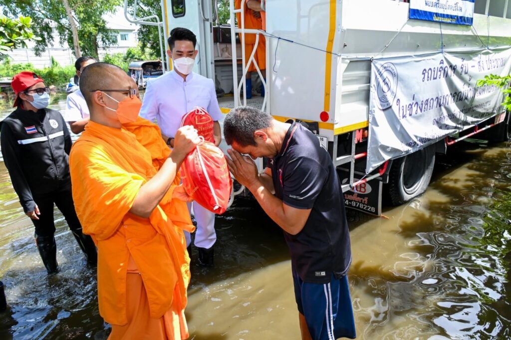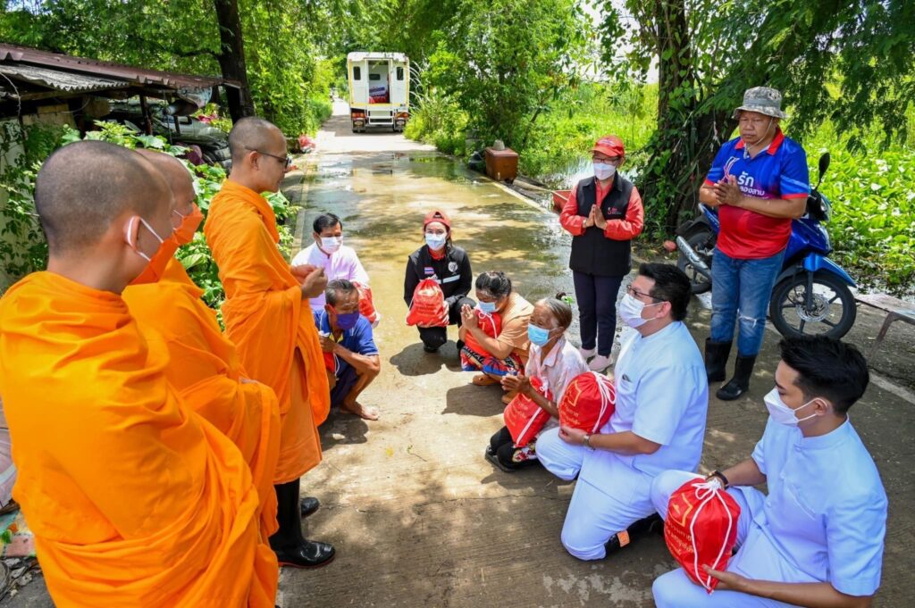 วันที่ 16 กันยายน 2565 ที่ศูนย์บัญชาการริมเขื่อนสะพานแดง ต.ประชาธิปัตย์ อ.ธัญบุรี จ.ปทุมธานี พระมหานพพร ปุญฺญชโย ผู้แทนวัดพระธรรมกาย และมูลนิธิธรรมกาย พระศรีรัตน์ โชติรตโน ประธานศูนย์ส่งเสริมศีลธรรมจังหวัดปทุมธานี พร้อมด้วย คุณองอาจ ธรรมนิทา ผู้แทนคณะศิษยานุศิษย์วัดพระธรรมกาย และคณะร่วมกันลงพื้นที่ส่งมอบถุงยังชีพภายในบรรจุข้าวสารอาหารแห้ง จำนวน 200 ชุด ให้กับ ร้อยตำรวจเอก ดร.ตรีลุพธ์ ธูปกระจ่าง นายกเทศมนตรีนครรังสิต เพื่อส่งแรงใจช่วยเหลือบรรเทาความเดือดร้อนของผู้ประสบภัยน้ำท่วมในเขตพื้นที่เทศบาลนนครรังสิต อำเภอธัญบุรี จังหวัดปทุมธานี เป็นสาธารณสงเคราะห์