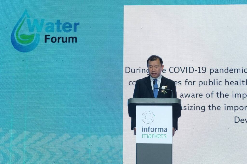 นายภาดล ถาวรกฤชรัตน์ อธิบดีกรมทรัพยากรน้ำ กล่าวว่า วันนี้ปัญหาการเปลี่ยนแปลงสภาพภูมิอากาศกลายเป็นสาเหตุหลักที่ทำให้ทั่วโลกต้องเร่งแก้ไข สำหรับประเทศไทยได้วางนโยบายเพื่อรองรับวิกฤตดังกล่าว โดยเฉพาะในด้านการสร้างความั่นคงทางน้ำนั้น ได้มีการจัดทำแผนแม่บทการบริหารจัดการทรัพยากรน้ำ 20 ปี เพื่อส่งเสริมการบริหารจัดการทรัพยากรน้ำอย่างมีประสิทธิภาพ อาทิ การติดตั้งระบบเตือนภัยล่วงหน้าสำหรับพื้นที่เสี่ยงอุทกภัย การพัฒนาและบำรุงรักษาระบบตรวจวัดสภาพน้ำทางไกลอัตโนมัติ รวมทั้งการนำเอาหลัก 3R มาประยุกต์ใช้เพื่อส่งเสริมการใช้น้ำอย่างมีประสิทธิภาพ พร้อมกันนี้ยังเป็นส่วนหนึ่งของการจัดงาน Thai Water Expo 2022 ที่ถือเป็นหนึ่งโอกาสสำคัญในการร่วมกันพาไทยไปสู่ความพร้อมในการสร้างสังคมสะอาดและขานรับต่อเป้าหมายการพัฒนาอย่างยั่งยืน ตามหลัก SGDs ของสหประชาชาติที่มุ่งมั่นจะให้มีน้ำเพื่อใช้ประโยชน์และมีการจัดการน้ำและสุขาภิบาลสำหรับทุกคน นับเป็นเป้าหมายที่เป็นความท้าทายสำคัญที่จะเข้าถึงสำหรับทุกประเทศ รวมทั้งประเทศไทย