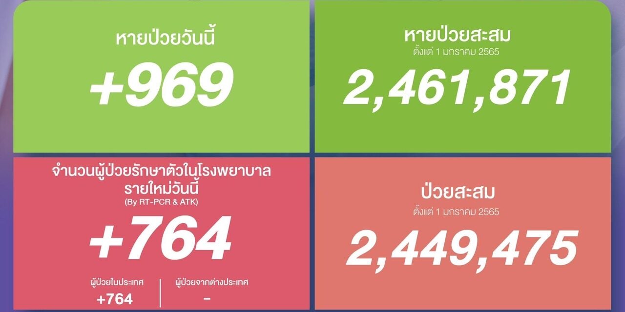 หายป่วยสะสม 2,461,871 ราย (ตั้งแต่ 1 มกราคม 2565)