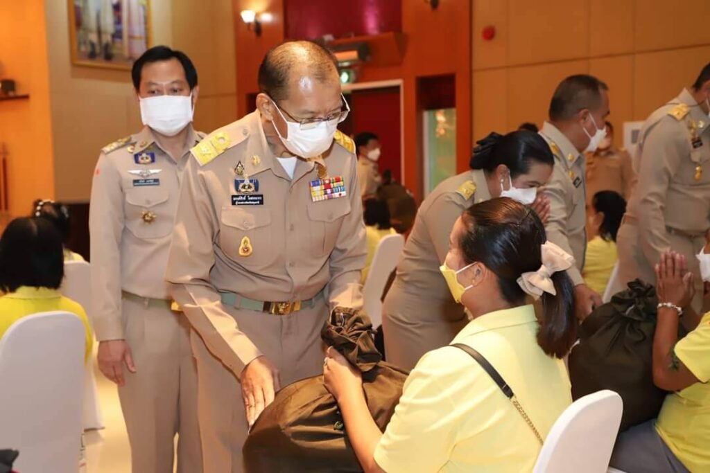 จากนั้น ผู้แทนพระองค์ เป็นประธานในพิธีมอบถุงพระราชทาน จำนวน 500 ถุง เพื่อมอบให้แก่ประชาชนผู้ที่ได้รับความเดือดร้อนจากอุทกภัย โดยมีผู้ว่าราชการจังหวัดปทุมธานี เป็นผู้กล่าวรายงานสถานการณ์อุทกภัยในพื้นที่ ในการนี้ ผู้ว่าราชการจังหวัด นายอำเภอธัญบุรี และนายกเทศมนตรีนครรังสิต เป็นตัวแทนรับมอบถุงยังชีพพระราชทาน ต่อมา ผู้แทนพระองค์ ผู้ว่าราชการจังหวัดปทุมธานี นายอำเภอธัญบุรี นายกเทศมนตรีนครรังสิต และข้าราชการผู้แทนจังหวัดปทุมธานี ร่วมมอบถุงยังชีพพระราชทานแก่ตัวแทนราษฎรที่ประสบอุทกภัย.