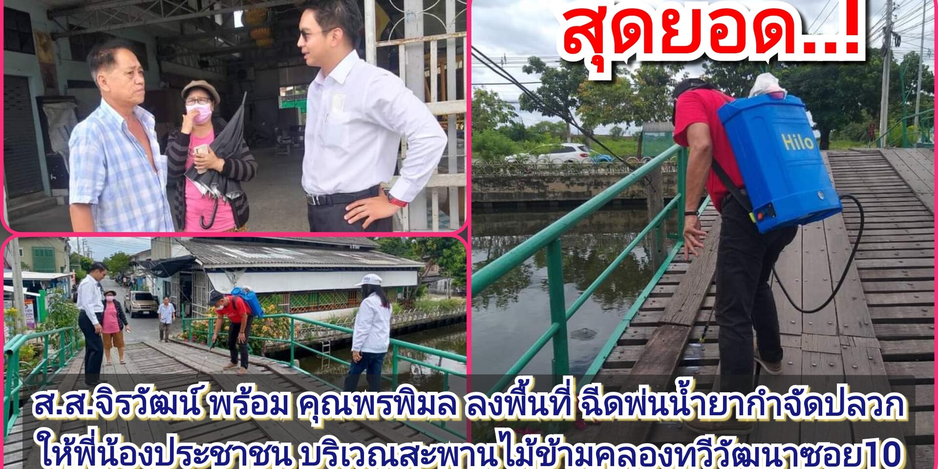 เมื่อวันที่ (16ก.ย.65) ผ่านมา ส.ส.จิรวัฒน์ อรัณยกานนท์ สมาชิกสภาผู้แทนราษฎร กทม. เขต 27 พร้อมด้วย คุณพรพิมล สูญญาจารย์ “ผู้ช่วย ส.ส.” อดีตผู้สมัคร ส.ก. พรรคเพื่อไทย นำทีมงาน ลงพื้นที่ ฉีดพ่นน้ำยากำจัดปลวก บริเวณสะพานไม้ข้ามคลอง ทวีวัฒนาซอย10 เขตทวีวัฒนา กทม.