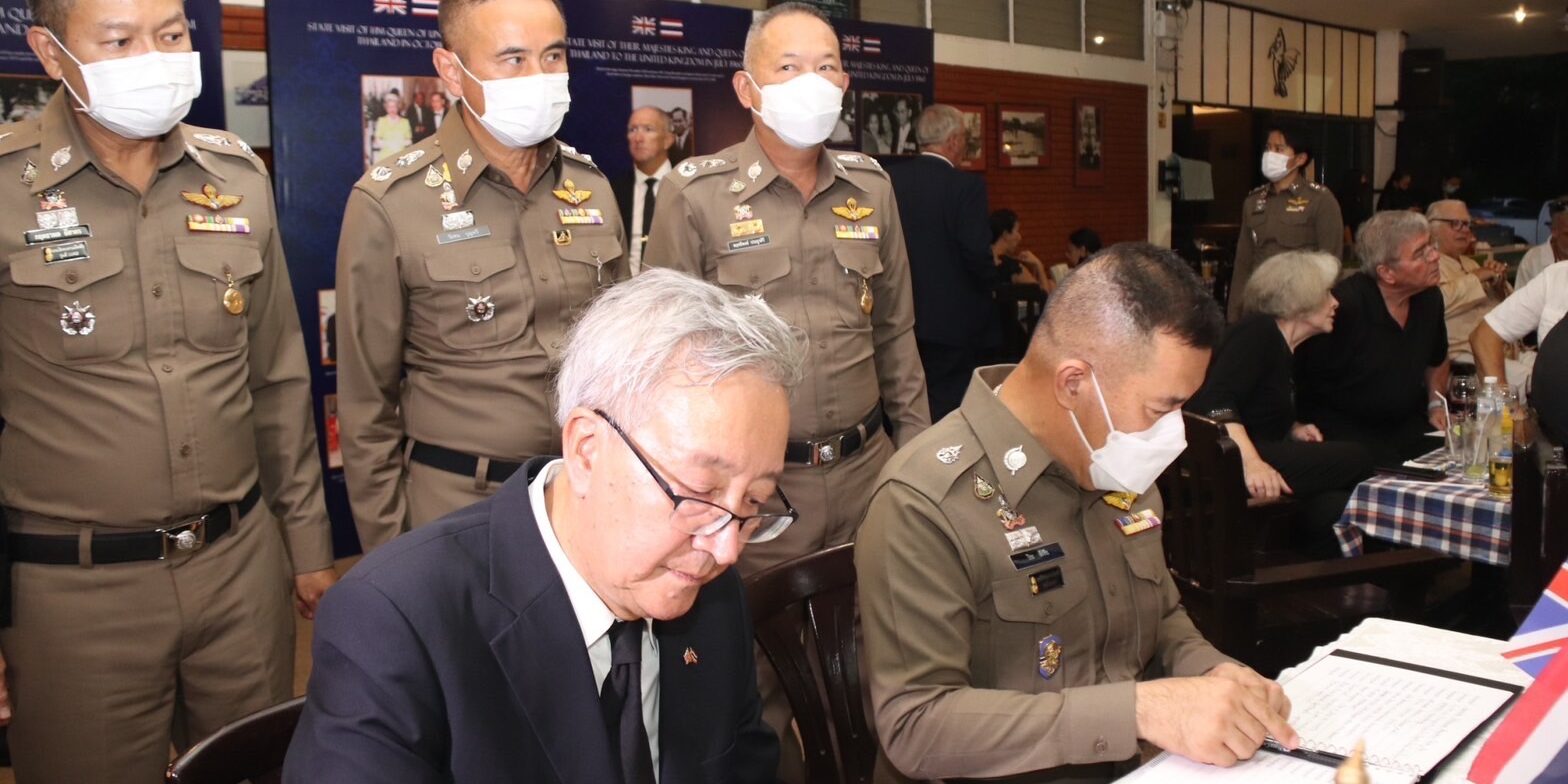 วันจันทร์ที่ 19 ก.ย.65 เวลา 18.30 น. พล.ต.ท.ปิยะ ต๊ะวิชัย ผบช.ภ.5 พร้อมด้วย พล.ต.ต.กฤตธาพล ยี่สาคร รอง ผบช.ภ.5,พล.ต.ต.พฤทธิพงษ์ ประยูรศิริ รอง ผบช.ภ.5 ,พล.ต.ต.วีรชน บุญทวี รอง ผบช.ภ.5 และข้าราชการตำรวจ ภ.5 ได้ร่วมพิธีไว้อาลัยแด่สมเด็จพระราชชินีนาถ เอลิซาเบธที่สอง โดยมีคุณเบน สวาสติ ทอมสัน กงสุลกิตติมศักดิ์สหราชอาณาจักร ประจำจังหวัดเชียงใหม่ ร่วมพิธี ณ สโมสรเชียงใหม่ ยิมคานา อ.เมือง จ.เชียงใหม่