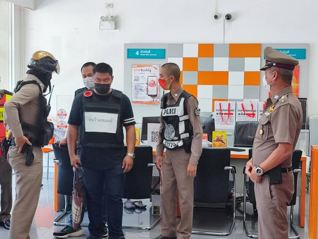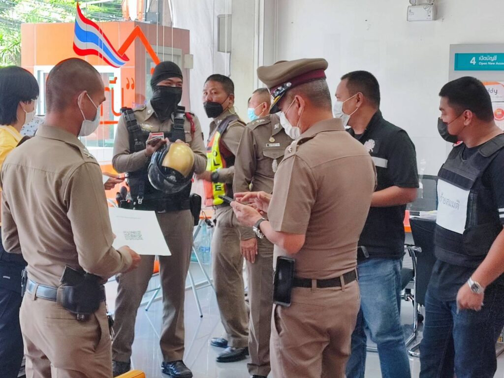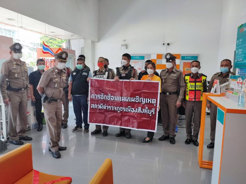๓. จำลองสมมุติเหตุการณ์ สมมุติเหตุคนร้ายก่อเหตุชิงทรัพย์บริเวณเคาน์เตอร์ธนาคารอาคารสงเคราะห์ สาขาสิงห์บุรี โดยใช้อาวุธปืนจี้บังคับพนักงานให้เจ้าหน้าที่ธนาคารส่งเงินให้จำนวนหนึ่ง เมื่อได้ทรัพย์ที่ต้องการแล้ว คนร้ายขับขี่รถจักรยานยนต์ หลบหนี