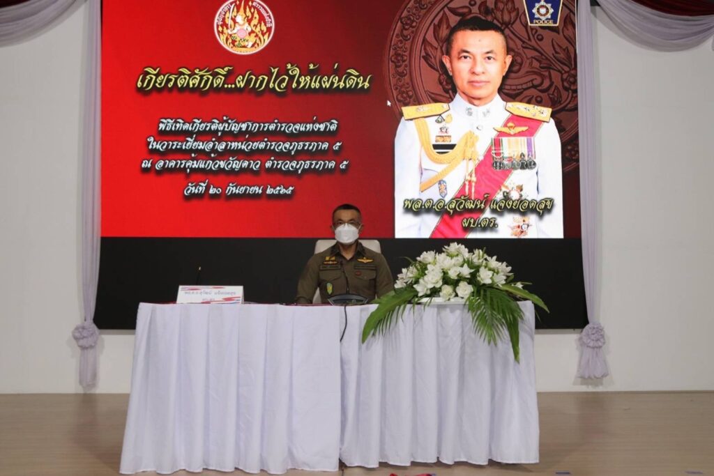 วันที่ 20 กันยายน 2565 เวลา 12.20 น. พล.ต.อ.สุวัฒน์ แจ้งยอดสุข ผบ.ตร.ได้เดินทางมาตรวจเยี่ยมและมอบสิ่งของบำรุงขวัญแก่ข้าราชการตำรวจในสังกัด ภ.5 เพื่อเป็นขวัญและกำลังใจในการปฏิบัติหน้าที่ โดยมี พล.ต.ท.ปิยะ ต๊ะวิชัย ผบช.ภ.5 พร้อมด้วย พล.ต.ท.ยุทธชัย พัวประเสริฐ ผู้ทรงคุณวุฒิพิเศษสำนักงานตำรวจแห่งชาติ, พล.ต.ต.กฤตธาพล ยี่สาคร รอง ผบช.ภ.5, พล.ต.ต.บัณฑิต ตุงคะเศรณี รอง ผบช.ภ.5, พล.ต.ต.พฤทธิพงษ์ ประยูรศิริ รอง ผบช.ภ.5, พล.ต.ต.พิเชษฐ จีระนันตสิน รอง ผบช.ภ.5, พล.ต.ต.วีรชน บุญทวี รอง ผบช.ภ.5, พล.ต.ต.เฉลิมพล จินตรัตน์ รอง ผบช.ภ.5, ผบก.ในสังกัด ภ.5 และ หน.สภ.ในสังกัด ภ.5 ร่วมให้การต้อนรับและรับมอบสิ่งของบำรุงขวัญตรวจเยี่ยมจาก พล.ต.อ.สุวัฒน์ แจ้งยอดสุข ผบ.ตร. ณ อาคารคุ้มแก้วขวัญดาว ภ.5 อ.เมือง จ.เชียงใหม่