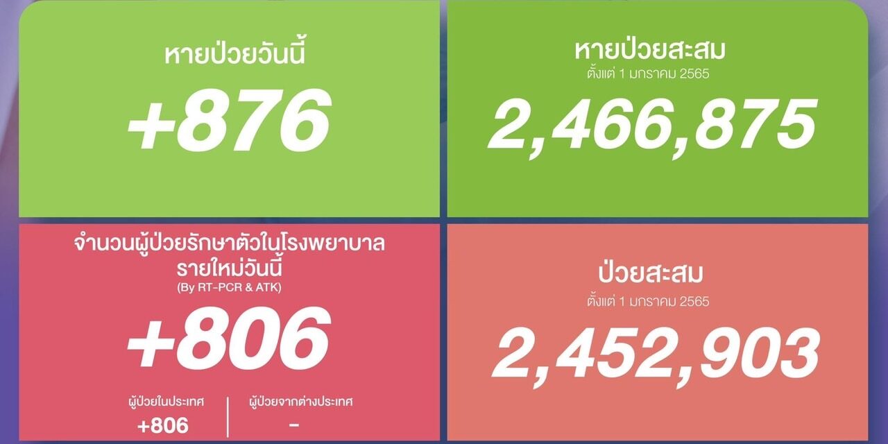 หายป่วยสะสม 2,466,875 ราย (ตั้งแต่ 1 มกราคม 2565)