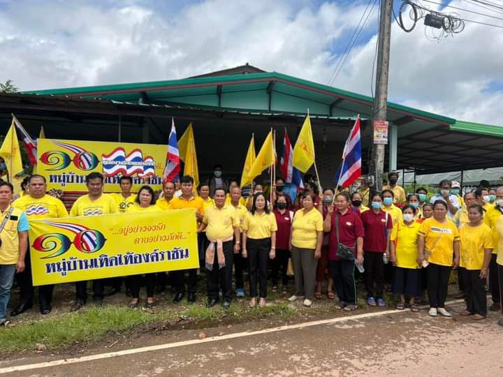 วันนี้(21 กันยายน 2565) ณ ศาลากลางบ้าน บ้านท่านาคูณ ต.ปากคาด อ.ปากคาด จ. บึงกาฬ นายอานนท์ แสนน่าน ประธานหมู่บ้านเทิดไท้องค์ราชันแห่งประเทศไทย นางนิตยา นาโล หรือ “นักสู้ปอสี่” ประธานหมู่บ้านเทิดไท้องค์ราชันภาคอีสาน นายสมดี ผาอาจ นางประภาพร ผาอาจ ผู้นำองค์กรภาคประชาชน ผนึกกำลังกับ “คนเสื้อแดง” และ “คนเสื้อเหลือง” ในพื้นที่จังหวัดบึงกาฬ จังหวัดหนองคาย จังหวัดนครพนม และ จังหวัดสกลนคร เปิด “หมู่บ้านเทิดไท้องค์ราชัน” พร้อมประกาศดังลั่น “อยู่อย่างจงรัก ตายอย่างภักดี” ตามแนวทาง “แรมโบ้” นายเสกสกล อัตถาวงศ์ อดีตผู้ช่วยรัฐมนตรีประจำนายกรัฐมนตรี ที่ต้องการให้ประชาชนออกมาแสดงพลังแห่งความจงรักภักดีต่อชาติ ศาสนา พระมหากษัตริย์ ที่เป็นเสาหลักของพสกนิกรชาวไทยทั้งประเทศ
