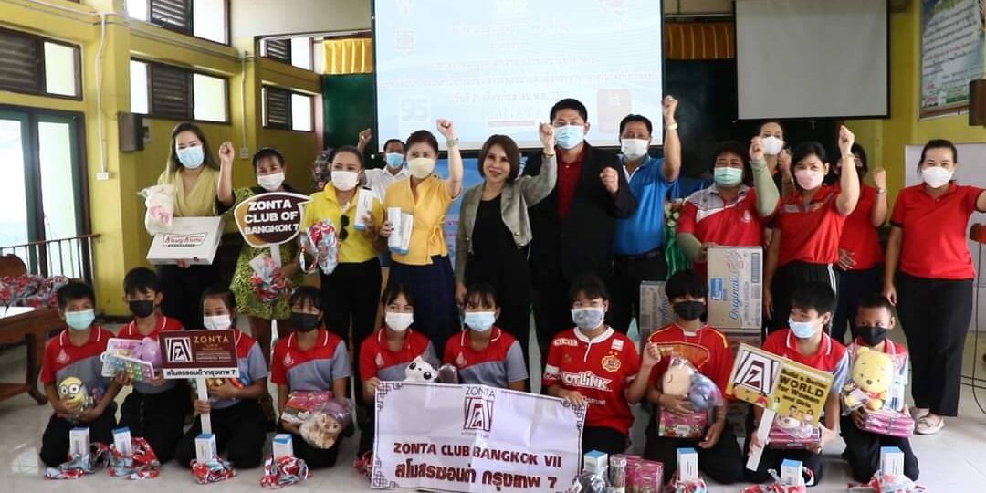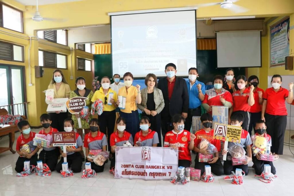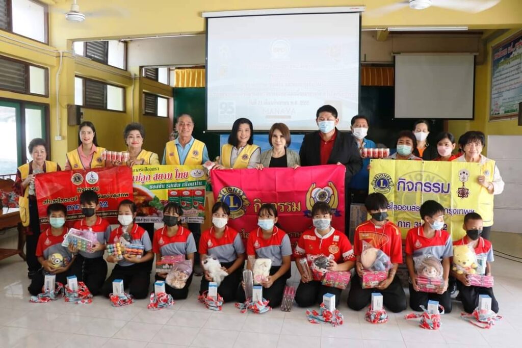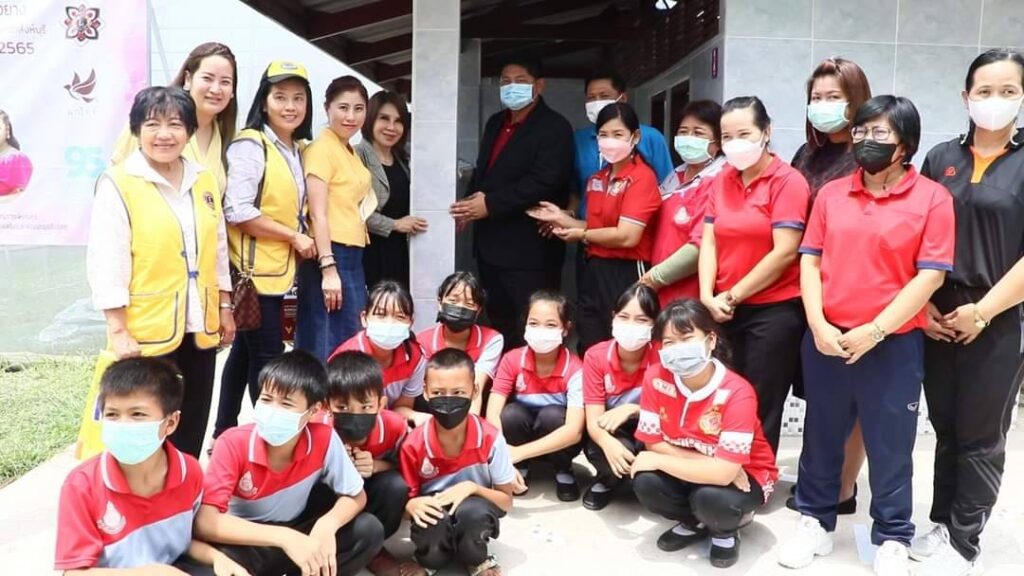 วันที่ 21 กันยายน 2565 ที่ โรงเรียนชุมชนวัดดงยาง หมู่ที่ 12 ตำบลทองเอน อำเภออินทร์บุรี จังหวัดสิงห์บุรี นางสาวสกุลทิพย์ แซ่เฮง นายกสมาคมการค้าส่งเสริมและพัฒนาธุรกิจ SME ร่วมกับคุณพรศิริ ทรงฤกษ์ นายกสโมสรไลออนส์ ราชเทวี คุณรนิดา นกไทยเจริญ ประธานบริษัทนกไทย คุณณัชปภา จีระกุลกิจนายกสโมสรชอนต้ากรุงเทพ 7 รวมทั้งสมาชิกสมาคมและเพื่อนๆ ร่วมกันมอบเครื่องกรองน้ำ อุปกรณ์การเรียนและสร้างห้องน้ำใหม่ ให้กับนักเรียนโรงเรียนชุมชนวัดดงยาง จำนวน 120 คน อีกทั้งยังเลี้ยงอาหารกลางวัน ให้กับนักเรียนชั้นอนุบาลและประถมศึกษา เด็กนักเรียนรู้สึกดีใจเป็นอย่างมากที่ได้กินของอร่อย