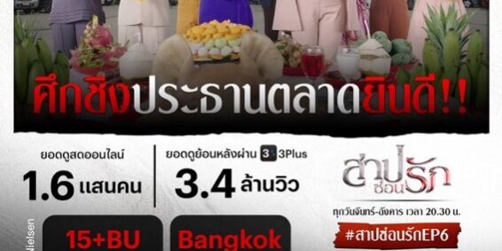 ถึงเวลาออกโรงฟาดฉากใหญ่ของ 2 แม่ ระหว่าง ทีมสะใภ้ อย่าง หงษ์ (ใหม่ เจริญปุระ) เจ้าแม่บีบน้ำตาแสร้งทำดี และ ทีมสายเลือดตัวจริง อย่าง ภัทรา (แหม่ม คัทลียา) เจ้าแม่เบะปากตัวฉกาจ ในเรื่อง “สาปซ่อนรัก” ทางช่อง 3 ล่าสุดทำเรตติ้ง อีพี 6 ได้มาสเตอร์พีซ ในกลุ่มผู้ชมอายุ 15 ปีขึ้นไป ในกลุ่ม (Bangkok and Urban) หรือ 15+ BU ที่ทำสถิติไปได้มากถึง 4.56 ส่วนในพื้นที่ของกรุงเทพฯ ทำไปได้สูงถึง 5.26 เรียกว่าคนดูเทคะแนนความเข้มข้นให้ 10 เต็ม!