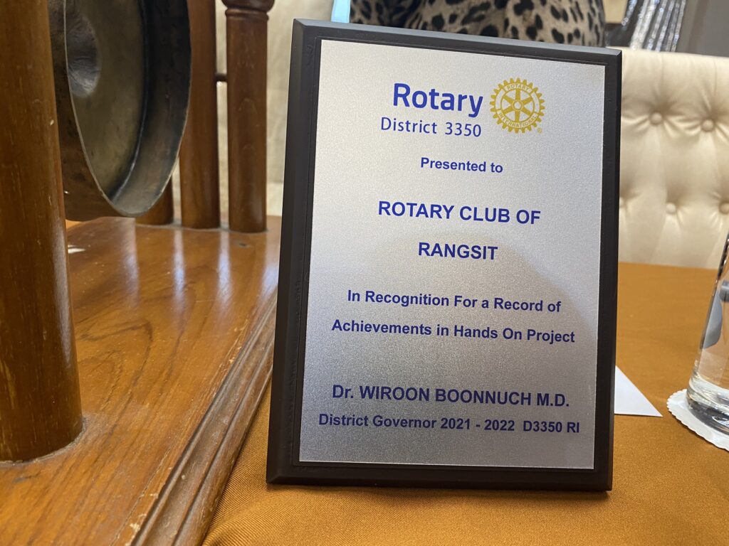 วันที่ 22 กันยายน 2565 พล.อ.ต.ธนะพัฒน์ ถึงสุข นายกสโมสรโรตารีรังสิต ได้จัดประชุมเกี่ยวกับโครงการการบริจาคแว่นสายตาให้แก่เด็กนักเรียน 2 โรงเรียนในพื้นที่ จ.ปทุมธานี จำนวน 200 คน มูลค่าแว่นสายตาโดยรวมประมาณ 90,000 บาท ให้แก่นักเรียนโรงเรียนขจรทรัพย์อำรุง ต.บ้านใหม่ อ.เมืองปทุมธานี จ.ปทุมธานี จำนวน 100 คน และโรงเรียนวัดเทียนถวาย ถ.ติวานนท์ ต.บ้านใหม่ อ.เมืองปทุมธานี จ.ปทุมธานี จำนวน 100 คน ณ.โรงแรมธาราแกรนด์ ซ.รังสิต-นครนายก 14 ต.ประชาธิปัตย์ อ.ธัญบุรี จ.ปทุมธานี จ.ปทุมธานี และกำหนดการให้บริษัทผลิตแว่นเข้าวัดสายตาให้แก่นักเรียนทั้ง 2 โรงเรียนในวันที่ 28 กันยายน 2565 นี้ และได้เชิญ ดร.ชิระ ถาวรธวัช เป็นวิทยากรพิเศษบรรยายให้ความรู้แก่สมาชิกโรตารรังสิตในหัวข้อ ความเข้าใจผิดของคนไทยเรื่องเบาหวานเกี่ยวกับอาหารที่ควรกินและไม่ควรกิน จากนั้นได้มอบประกาศสนีบัตรให้แก่วิทยากรพิเศษ
