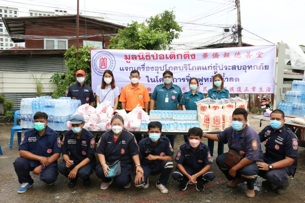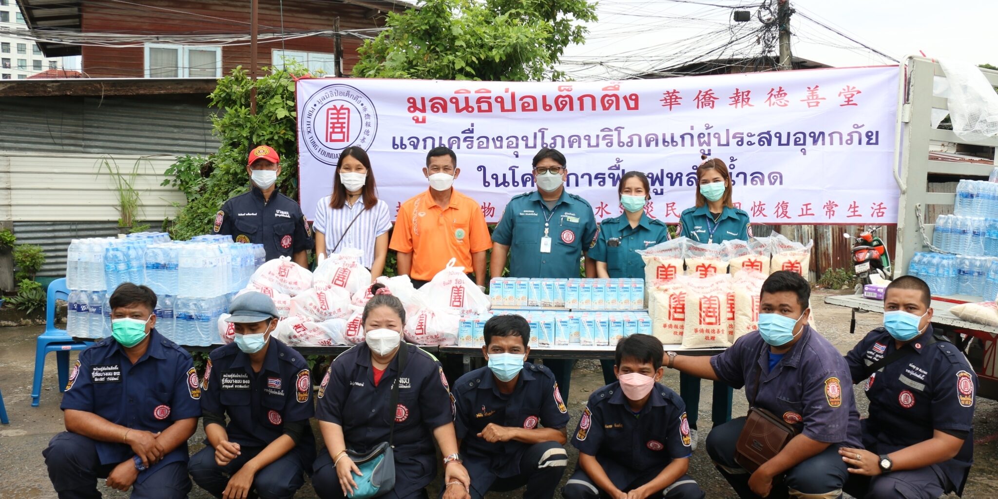 ระหว่างวันที่ 17-22 กันยายน 2565 มูลนิธิป่อเต็กตึ๊ง โดย นายวิเชียร เตชะไพบูลย์ ประธานกรรมการ ได้มอบหมายให้ฝ่ายสังคมสงเคราะห์ นำโดย นางศิริพร กระจ่างหล้า ผู้จัดการฝ่ายสังคมสงเคราะห์ จัดทีมเจ้าหน้าที่ และอาสาสมัครมูลนิธิป่อเต็กตึ๊ง ลงพื้นที่แจกจ่ายถุงยังชีพบรรจุเครื่องอุปโภคบริโภค อาทิ ข้าวสาร ปลากระป๋อง บะหมี่กึ่งสำเร็จรูป ขนม ชุดยาสามัญ น้ำดื่ม ฯลฯ ให้กับผู้ประสบภัยน้ำท่วมที่อาศัยอยู่ในชุมชนในพื้นที่เขตลาดกระบัง บางคอแหลม บางเขน มีนบุรี หนองจอก และจตุจักร รวม 6 เขต รวมชุดเครื่องอุปโภคบริโภคจำนวน 1,175 ชุด รวมงบประมาณดำเนินการทั้งสิ้น 352,500 บาท (สามแสนห้าหมื่นสองพันห้าร้อยบาทถ้วน) โดยมีการประสานงานกับสำนักงานเขตต่างๆ ในการลงพื้นที่ให้ความช่วยเหลือ พร้อมด้วยอาสาสมัครมูลนิธิป่อเต็กตึ๊งในพื้นที่และใกล้เคียง รวมทั้งอาสาสมัครศิลปิน ร่วมลงพื้นที่ให้ความช่วยเหลือ