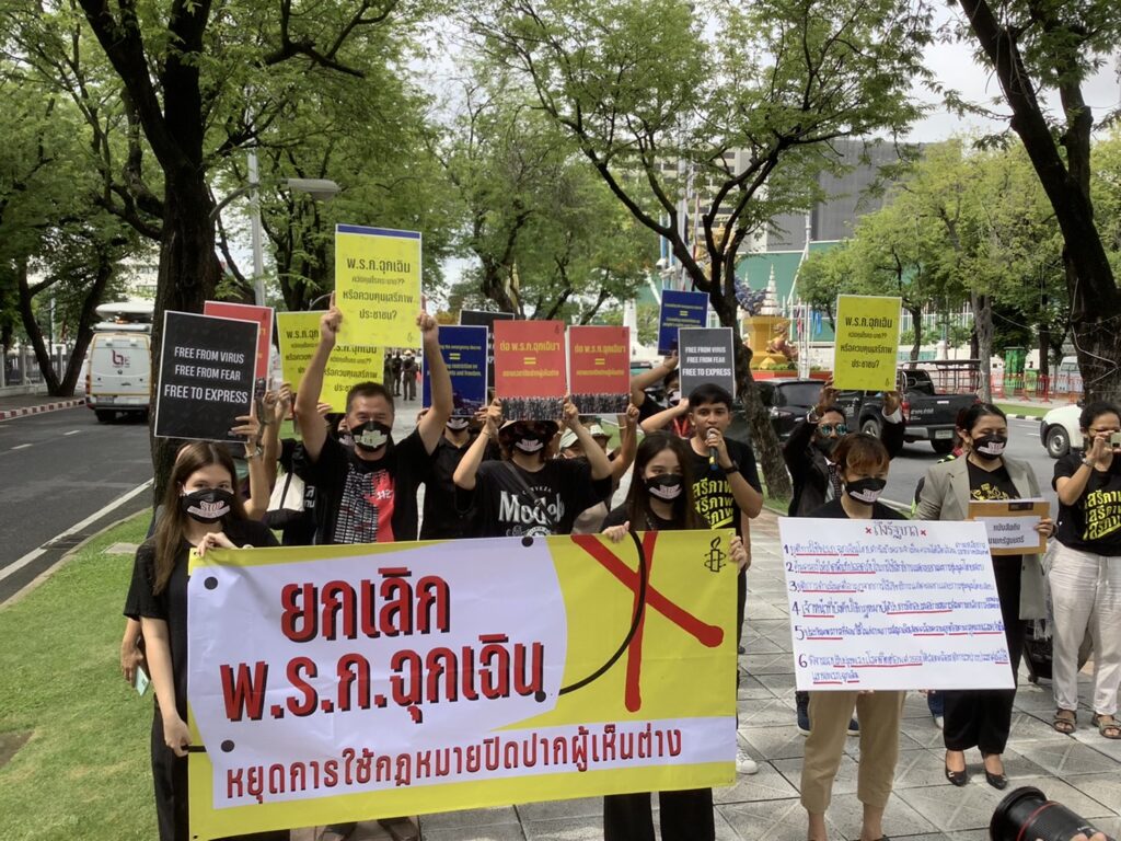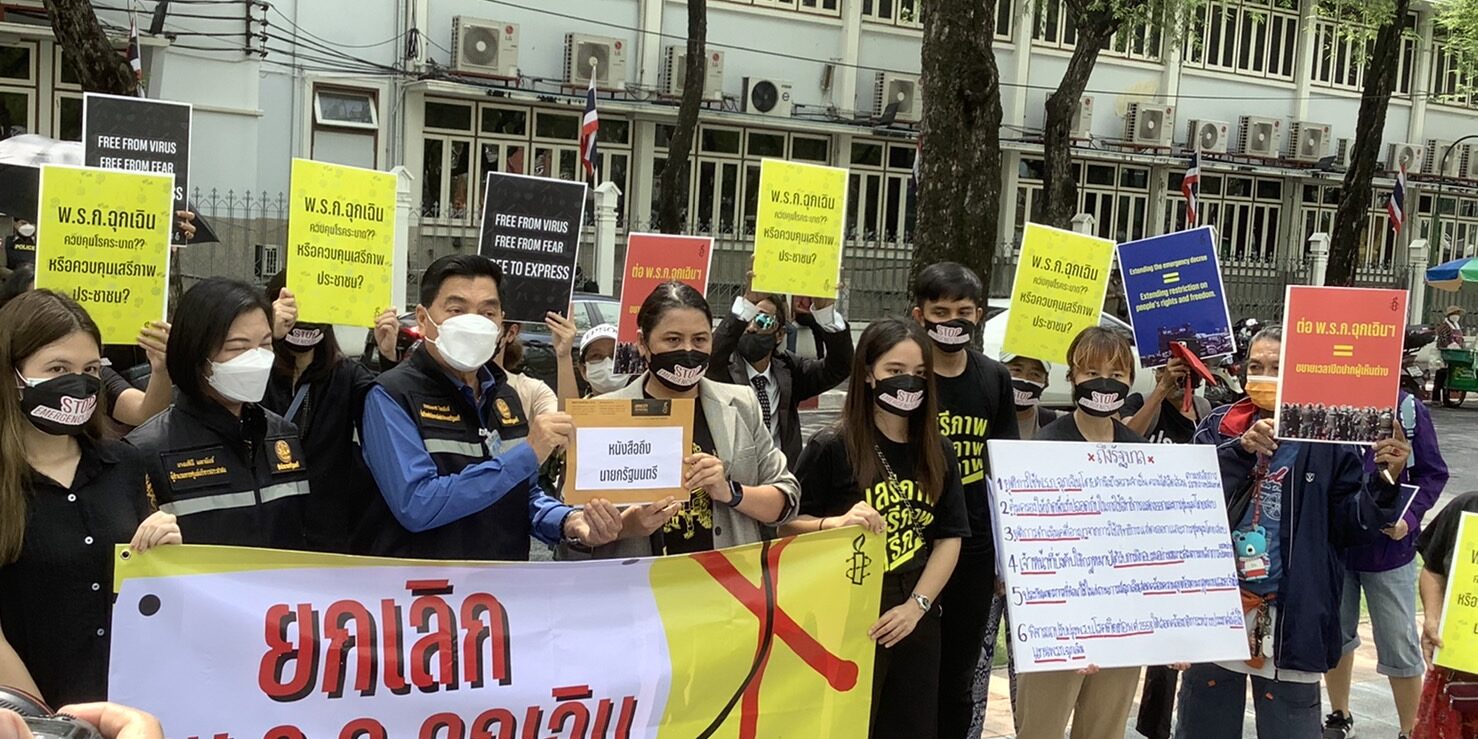 เดินขบวนเพื่อยื่นหนังสือข้อเรียกร้องให้รัฐบาลยุติการประกาศใช้ พ.ร.ก.ฉุกเฉินฯ โดยที่ผ่านมา มีผู้ถูกดำเนินคดีตามข้อกล่าวหาฝ่าฝืน พ.ร.ก.ฉุกเฉิน จำนวน 1,467 คนแล้ว