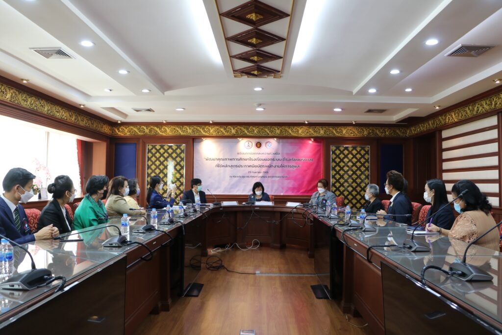 วันที่ 23 กันยายน 2565 : ดร.พีรศักดิ์ รัตนะ เลขาธิการคณะกรรมการส่งเสริมการศึกษาเอกชน (เลขาธิการ กช.) ร่วมลงนามลงนามบันทึกข้อตกลงความร่วมมือระหว่างสำนักงานคณะกรรมการส่งเสริมการศึกษาเอกชน สภาการพยาบาล และสมาคมโรงเรียนบริบาล ณ สภาการพยาบาล อาคารนครินทรศรี ในบริเวณกระทรวงสาธารณสุข พร้อมด้วย รองศาสตราจารย์ ดร.สุจิตรา เหลืองอมรเลิศ นายกสภาการพยาบาล และดร.สุภาวดี ดวงศิร นายกสมาคมโรงเรียนบริบาลร่วมลงนามบันทึกข้อตกลงดังกล่าว โดยมี ดร.ประยูร หรั่งทรัพย์ รองเลขาธิการ (กช.) ผู้ช่วยศาสตราจารย์ชุลีพร เชาวน์เมธากิจ ที่ปรึกษาประจำสภาการพยาบาลร่วมเป็นพยาน และมีผู้แทนโรงเรียนบริบาล 4 ภาคเข้าร่วมในพิธีดังกล่าว