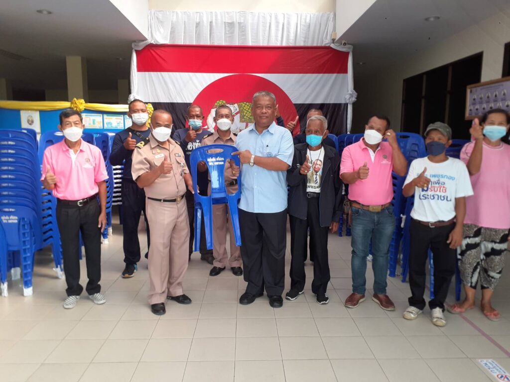 จากนั้นไปมอบเก้าอี้ให้ชุมชนฉัตรชัย-เสริมโชค และจุดสุดท้ายที่สมาคมชาวปักษ์ใต้ฯ แขวงทวีวัฒนา เขตทวีวัฒนา กรุงเทพฯ