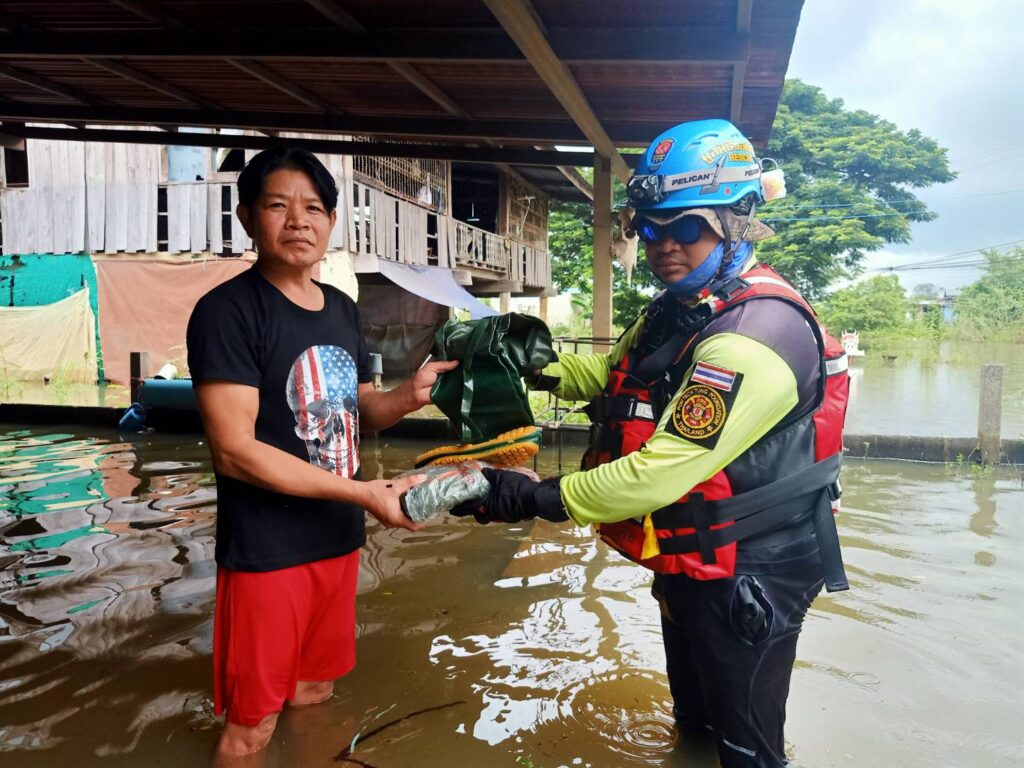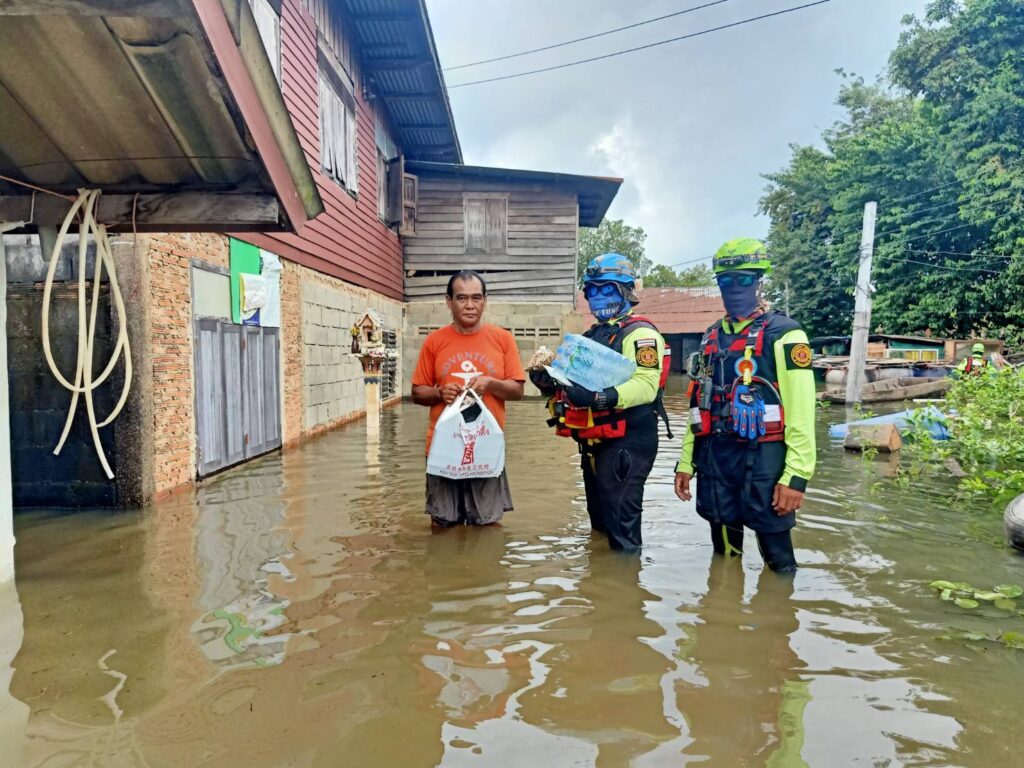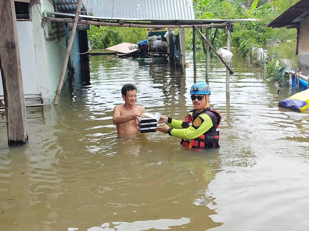 และในวันนี้ (วันที่ 24 กันยายน 65) นับตั้งแต่ช่วงเช้าที่ผ่านมา นายสมบูลย์ ขวัญอ่วม หัวหน้าแผนกบรรเทาสาธารณภัย จัดทีมเจ้าหน้าที่-อาสาสมัคร กู้ชีพ-กู้ภัย ลงพื้นที่อพยพ – เคลื่อนย้ายผู้ป่วยออกจากพื้นที่ประสบภัย ไปยังพื้นที่ปลอดภัย รวมถึงจัดทีมประกอบอาหารปรุงสุกบรรจุกล่องพร้อมน้ำดื่ม ถุงยังชีพ ชุดยาเวชภัณฑ์ บรรทุกเรือท้องแบน ลงพื้นที่ออกแจกจ่ายแก่ผู้ประสบภัยบริเวณพื้นที่อำเภอวารินชำราบ และอำเภอเมือง อาทิ บ้านดอนงิ้ว บ้านธานี เป็นต้น โดยมีนายภรัณยู โรจนวุฒิธรรม [แทค ภรัณยู] อาสาสมัครศิลปินมูลนิธิป่อเต็กตึ๊ง และทีมหน่วยกู้ภัยฉะเชิงเทราร่วมปฏิบัติภารกิจในครั้งนี้