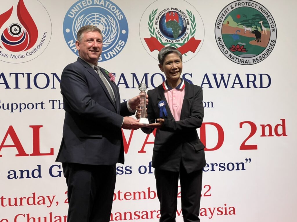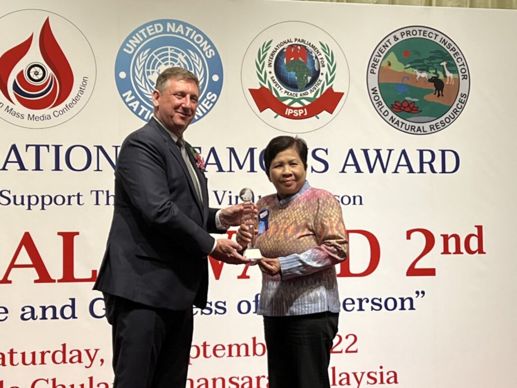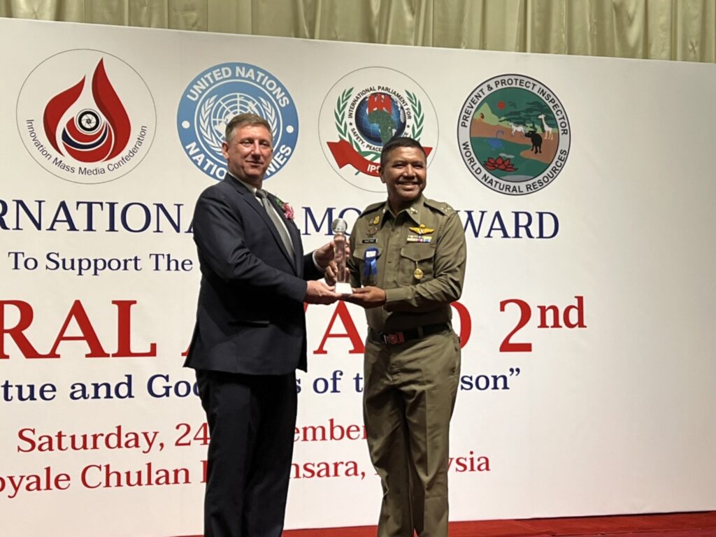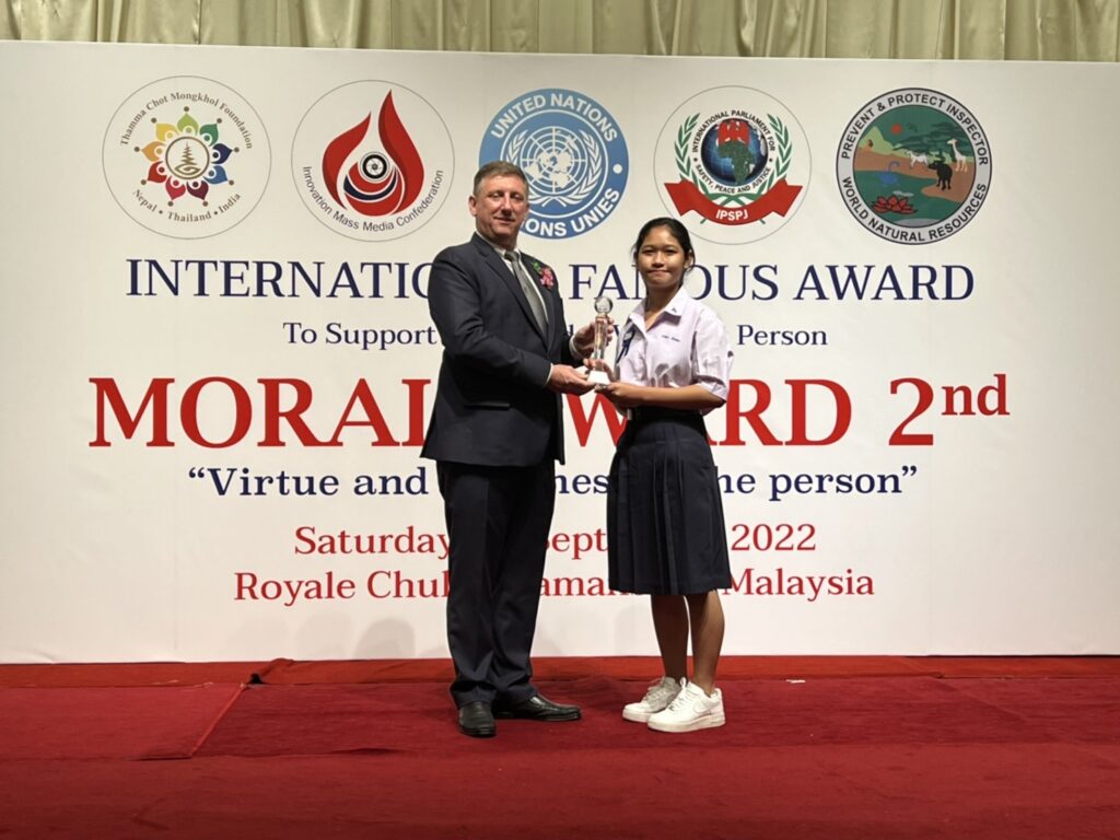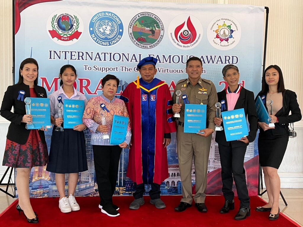 พร้อมกันนี้ภาคีเครือข่าย ภายใต้องค์กรสังกัด UN จัดงานรางวัลเกียรติคุณนานาชาติ MORAL AWARD ครั้งที่ 2/2 ได้จัดงาน “คุณธรรม คุณค่า แห่งบุคคล” โดยสมาพันธ์สื่อสร้างสรรค์ (Innovation Mass Media Confederation) ร่วมกับ มูลนิธิธรรมโชติมงคล ; เนปาล-ไทย- อินเดีย) (Thamma Chot Mongkhol Foundation ; Nepal Thailand India) มูลนิธิองค์การพิทักษ์ความปลอดภัยทรัพยากรธรรมชาติสิ่งแวดล้อมโลก (World Natural Resources Safety Protection Foundation Administration) และรัฐสภาระหว่างประเทศ เพื่อความปลอดภัย สันติภาพ และความยุติธรรม แห่งองค์การสหประชาชาติ (International Parliament for Safety and Peace Justice – United Nations) (IPSPJ -UN)