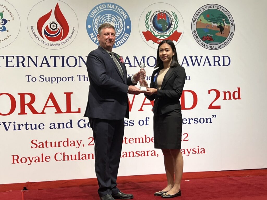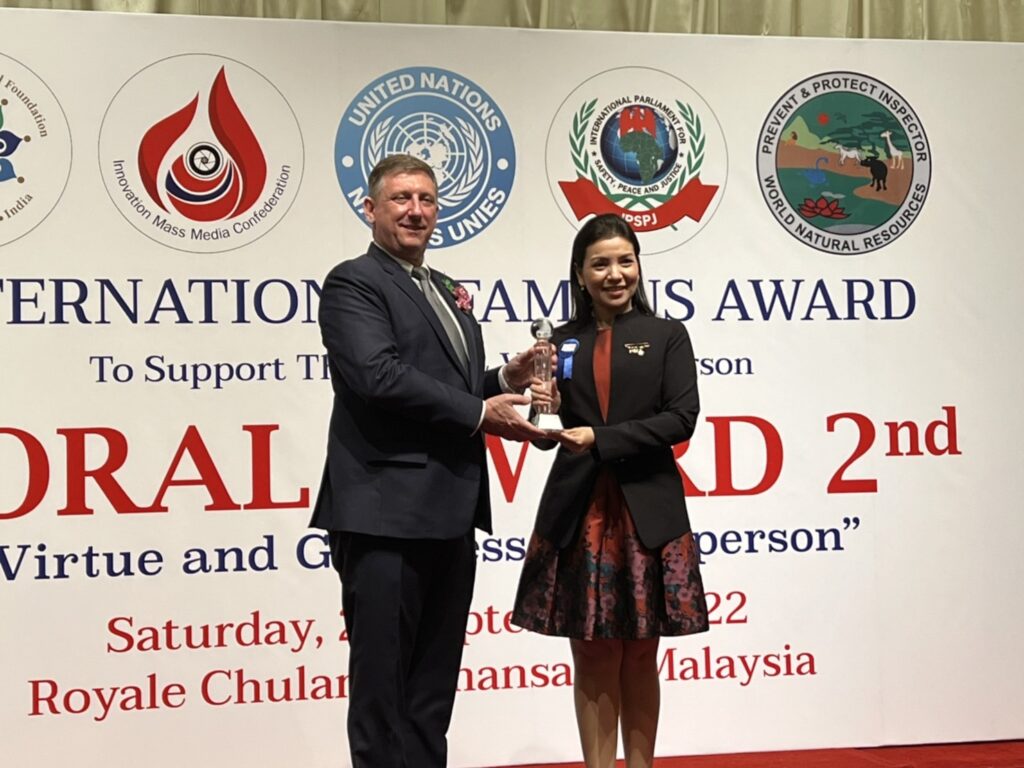 MORAL AWARD ครั้งที่ 2/2 “คุณธรรม คุณค่าแห่งบุคคล” ขึ้นอย่างยิ่งใหญ่ โดยมีบุคคลสำคัญ และผู้ที่ผ่านการคัดสรรค์ จากประเทศต่างๆ กว่า 10 ประเทศ จำนวน 75 คน เข้ารับรางวัลอย่างคึกคัก โดยมีคุณขวัญเรือน แก้วพิจิตร อุปนายกสมาคมเหยี่ยวข่าวภูมิภาคประเทศไทย ได้เข้ารับรางวัลสมาคมเหยี่ยวข่าวภูมิภาคที่ทำคุณประโยชน์ระดับชาติ เมื่อวันเสาร์ที่ 24 กันยายน 2565 ณ โรงแรมโรยัล ชูรัน ดามันซารา กรุงกัวลาลัมเปอร์ ประเทศมาเลเซีย