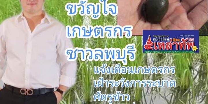 ขณะนี้ ฝนที่ตกชุก ปริมาณน้ำมาก ตามทุ่งนาต่างๆ มีต้นข้าวที่กำลังเจริญงอกงาม และบางแห่งมีน้ำท่วมขัง ทำให้มีศัตรูข้าวบางชนิด โดยเฉพาะ ‘หอยเชอรี่’ เมื่อได้น้ำฝนก็จะออกมาผสมขยายพันธุ์แพร่ระบาดไปได้อย่างรวดเร็ว ซึ่งหอยชนิดนี้ถือเป็นศัตรูข้าวที่สำคัญ ในพื้นที่อำเภอเมืองลพบุรี และอำเภอใกล้เคียง เริ่มพบการระบาดแล้วทั้งตำบลโพธิ์เก้าต้น ตำบบท้ายตลาด ตำบลท่าแค ตำบลถนนใหญ่ ตำบลเขาพระงาม