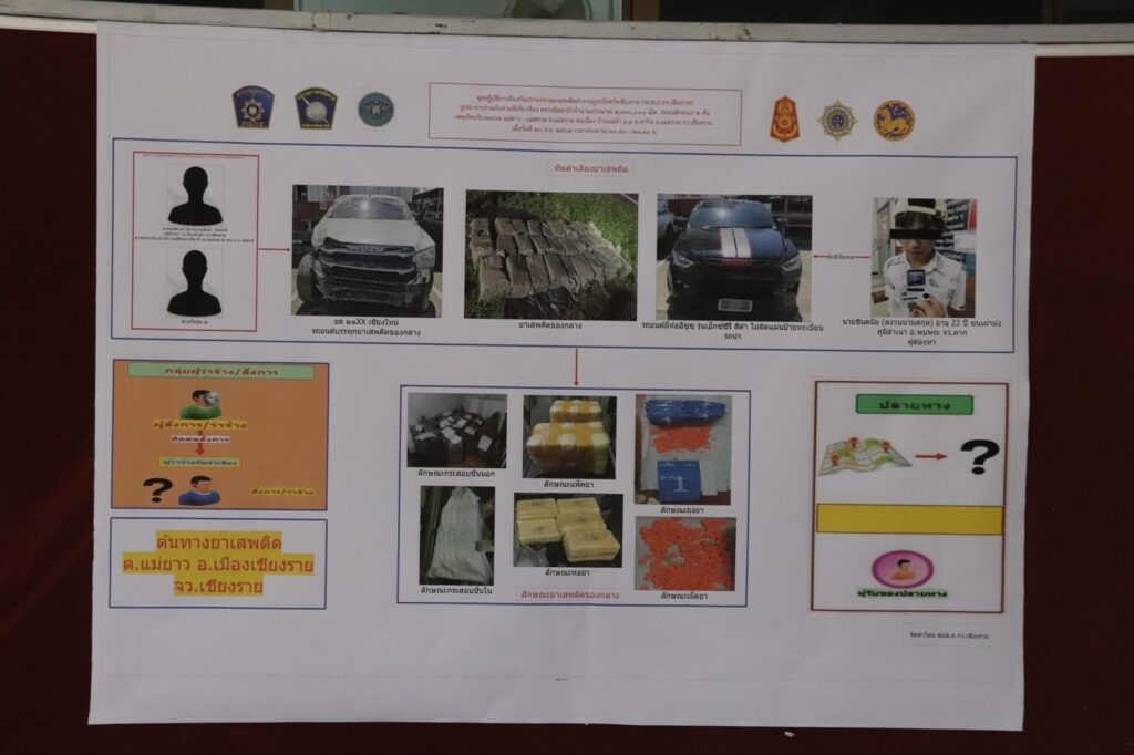 การจับกุมครั้งนี้ สืบเนื่องมาจากก่อนเกิดเหตุเจ้าหน้าที่ตำรวจชุดจับกุม ได้ทำการสืบทราบว่ามีความเคลื่อนไหวของกลุ่มผู้ลักลอบลำเลียงยาเสพติด จึงได้เฝ้าติดตามกลุ่มนี้อย่างใกล้ชิด ต่อมาวันที่ 20 กันยายน 2565 เวลาประมาณ 20.40 น. เจ้าหน้าที่ตำรวจชุดจับกุมพบกลุ่มผู้ต้องหามาด้วยรถยนต์ จำนวน 3 คัน ขับตามกันมา บริเวณถนนแม่ลาว – แม่สรวย อ.แม่สรวย จว.เชียงราย จึงได้ทำการติดตามไป พร้อมทั้งแจ้งให้ สภ.แม่ลาว จว.เชียงราย ทำการตั้งจุดตรวจเพื่อสกัดกั้น และเมื่อรถยนต์ผู้ต้องหาได้แล่นเข้ามาถึงจุดตรวจ กลับเร่งความเร็วรถเพื่อข้ามเกาะกลางถนนไปยังถนนฝั่งตรงข้ามและวิ่งสวนเลนถนนขับมุ่งหน้าไปทาง อ.แม่สรวยฯ ด้วยความเร็วสูงเพื่อหลบหนี เจ้าหน้าที่ตำรวจชุดจับกุม จึงได้ไล่ติดตามไป พร้อมได้ประสานไปยังเจ้าหน้าที่ตำรวจ สภ.แม่สรวยฯ เพื่อทำการสกัดรถยนต์ดังกล่าว ต่อมาพบว่า รถยนต์คันดังกล่าว ได้เกิดอุบัติเหตุพลิกคว่ำบริเวณพื้นที่หน้าร้านเฮือนหมูกระทะ ม.1 ต.แม่พริก อ.แม่สรวยฯ ไม่พบตัวผู้ขับขี่ ตรวจสอบท้ายกระบะพบ ยาเสพติดให้โทษประเภท 1 (ยาบ้า) จำนวน 31 กระสอบ ประมาณ 5,990,000 เม็ด จึงได้ตรวจยึดของกลางดังกล่าวไว้ ต่อมาเจ้าหน้าที่ตำรวจประจำด่านตรวจท่าก๊อ อ.แม่สรวยฯ สามารถควบคุมตัวผู้ขับขี่เป็นชายอีก 1 คน ทำหน้าที่เป็นรถนำ ได้ที่บริเวณบนถนนสายท่าก๊อ – เวียงป่าเป้า ต.ท่าก๊อ อ.แม่สรวยฯ จึงได้ทำการจับกุมตัว ผู้ต้องหา พร้อมของกลางทั้งหมดส่ง พงส. สภ.แม่สรวย จว.เชียงราย ซึ่งขณะนี้อยู่ระหว่างการรวบรวมพยานหลักฐานขออนุมัติออกหมายจับผู้ร่วมกระทำความผิดอีกอย่างน้อย 2 คน เพื่อดำเนินคดีตามกฎหมายต่อไป