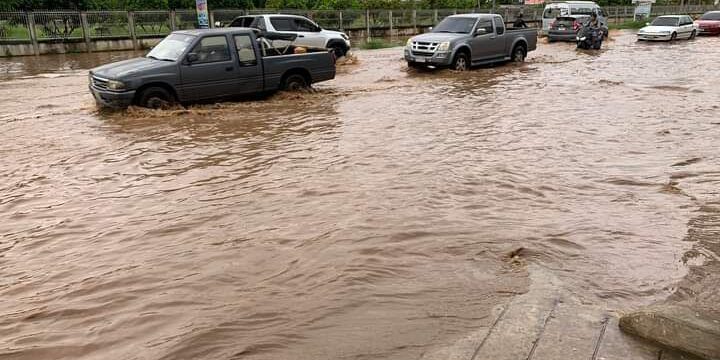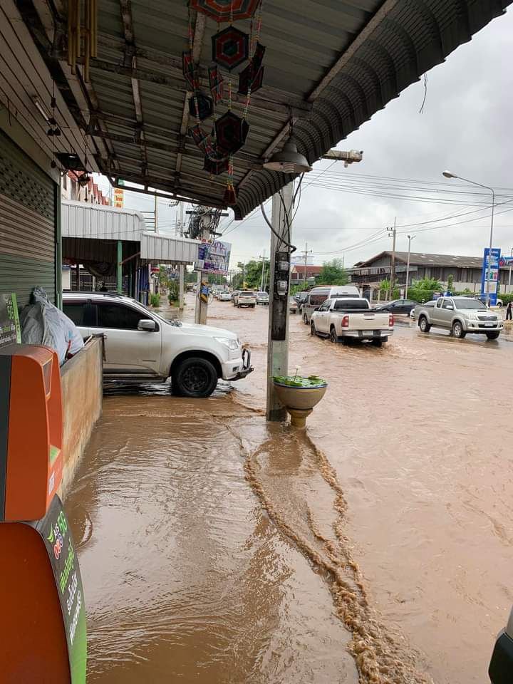 ฝากถึงประชาชนผู้ที่ใช้รถใช้ถนน จักรยานยนต์/รถยนต์ ถ้าคิดว่าผ่านไม่ได้ให้เลี่ยงเส้นทาง เพราะน้ำสูงเป็นบางช่วง
