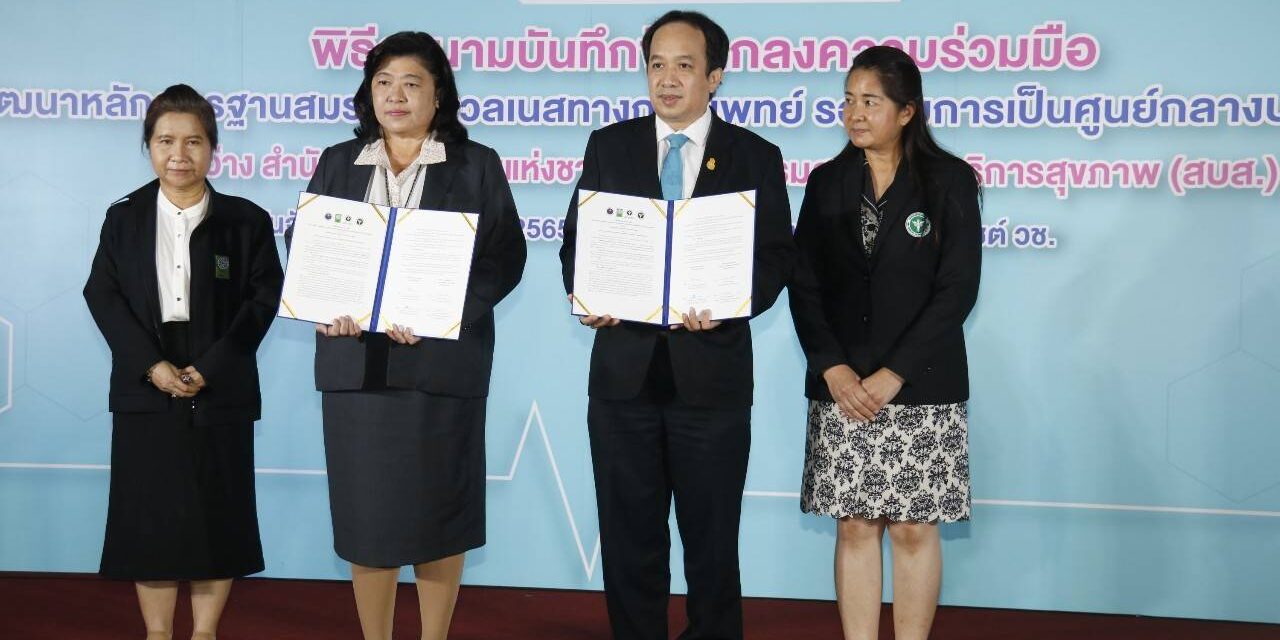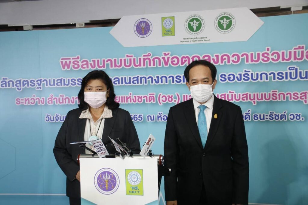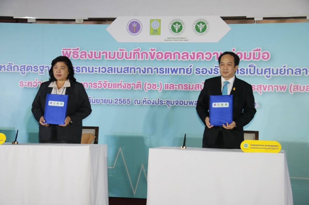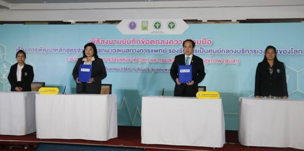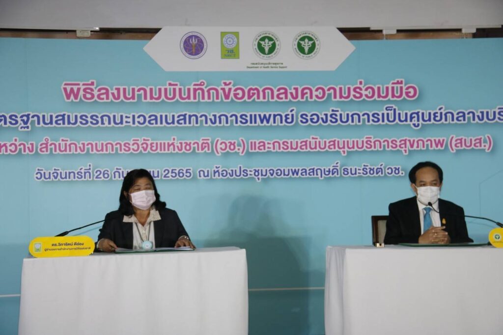 วิจัยและนวัตกรรม (อว.) ร่วมกับ กรมสนับสนุนบริการสุขภาพ (สบส.) กระทรวงสาธารณสุข จัดพิธีลงนามในบันทึกข้อตกลงในการพัฒนาหลักสูตรฐานสมรรถนะเวลเนสทางการแพทย์รองรับการเป็นศูนย์กลางบริการเวลเนสของโลก โดยมี ดร.วิภารัตน์ ดีอ่อง ผู้อำนวยการสำนักงานการวิจัยแห่งชาติ และ ทันตแพทย์อาคม ประดิษฐสุวรรณ รองอธิบดีกรมสนับสนุนบริการสุขภาพ ร่วมลงนาม เพื่อเป็นการสนับสนุนให้เกิดการพัฒนาหลักสูตรฐานสมรรถนะเวลเนสทางการแพทย์ของประเทศไทยให้เกิดขึ้น ณ ห้องประชุมจอมพลสฤษดิ์ ธนะรัชต์ lสำนักงานการวิจัยแห่งชาติ ถนนพหลโยธิน กรุงเทพมหานคร