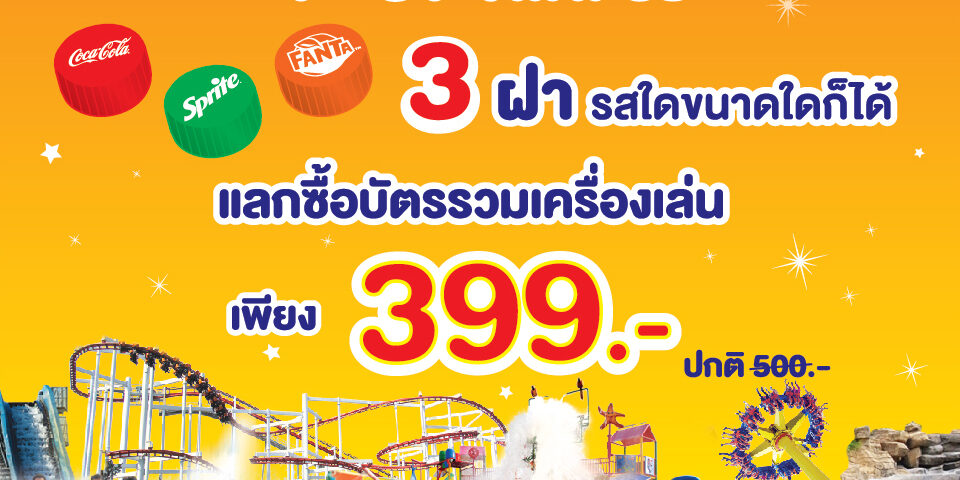 พักผ่อนช่วงปิดเทอมพลาดไม่ได้ !! “สนุกซ่ากับกับโค้ก..รับปิดเทอม” เพียงนำฝา โค้ก สไปรท์ แฟนต้า รสใด หรือขนาดใดก็ได้ 3 ฝา มาแลกซื้อบัตรรวมเครื่องเล่นเหลือเพียง 399 บาท สอบถามเพิ่มเติม โทร.0-2577- 8666 หรือคลิก www.facebook.com/dreamworldpark