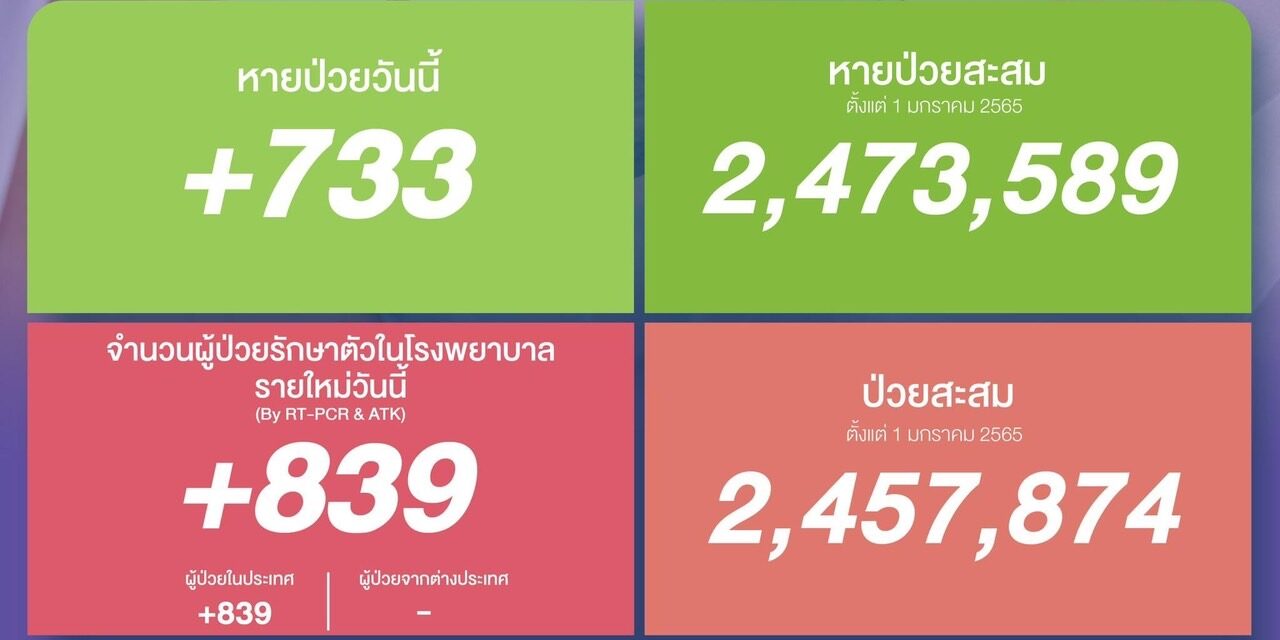 หายป่วยสะสม 2,473,589 ราย (ตั้งแต่ 1 มกราคม 2565)