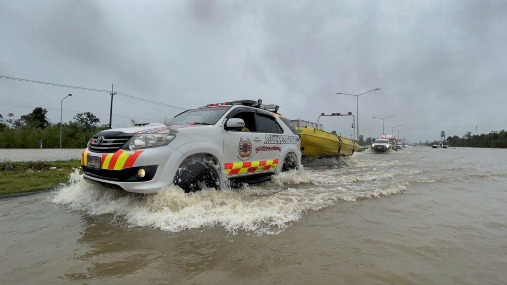 และ มูลนิธิในพื้นที่ เครือข่าย ภาคอีสาน นำเรือท้องแบน จำนวน 7 ลำ,รถกระบะยกสูง ออฟโรด 4×4 จำนวน 4 คัน